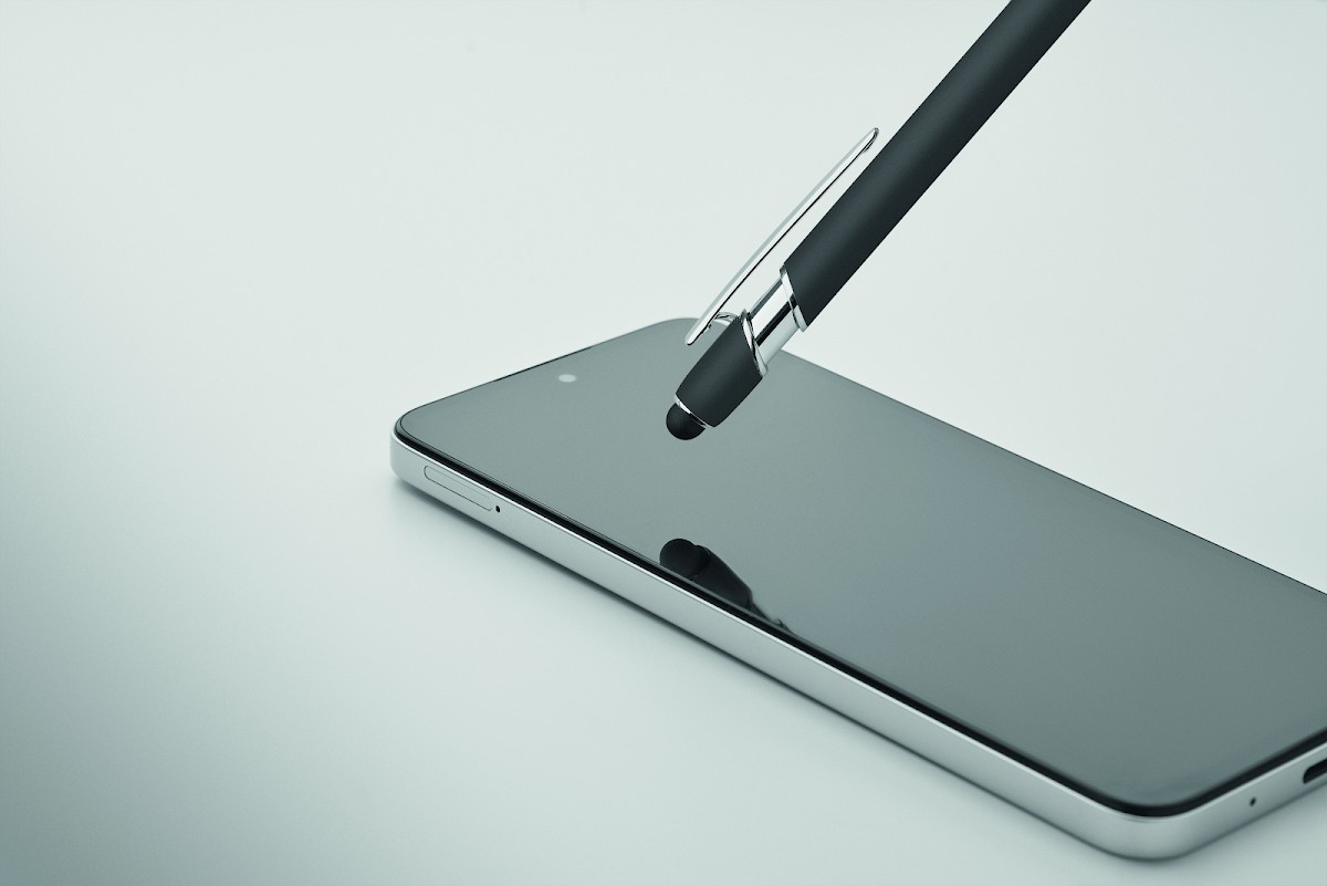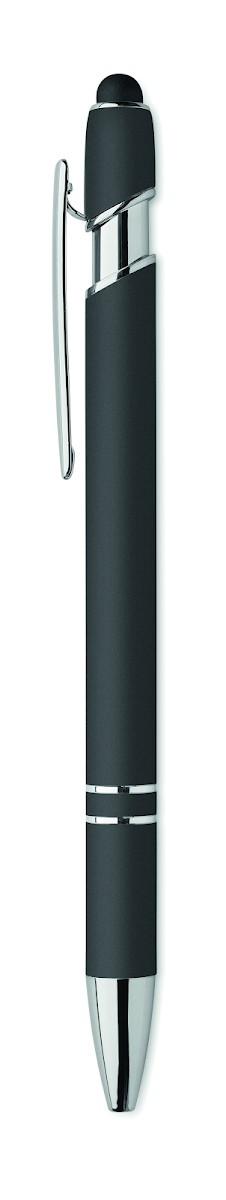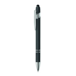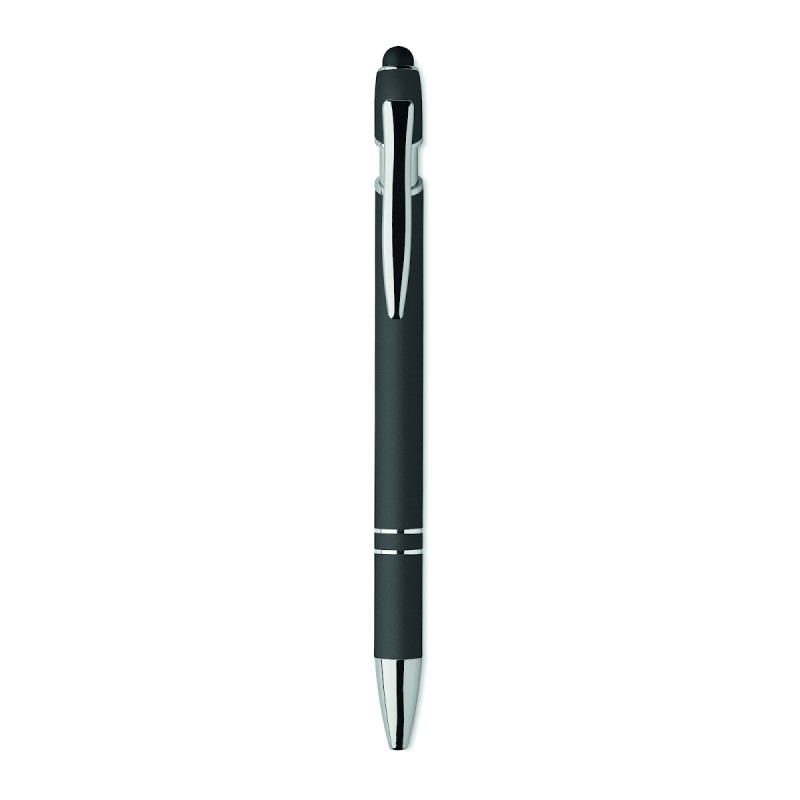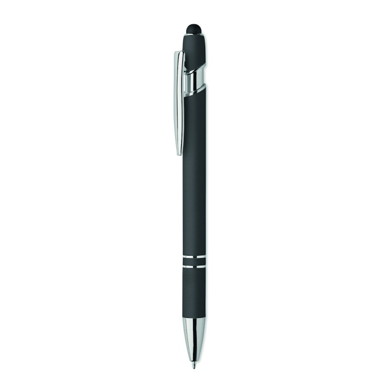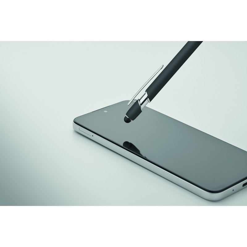 Stylo bille à poussoir en aluminium recyclé. Toucher gomme. Encre bleue.