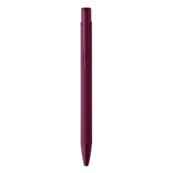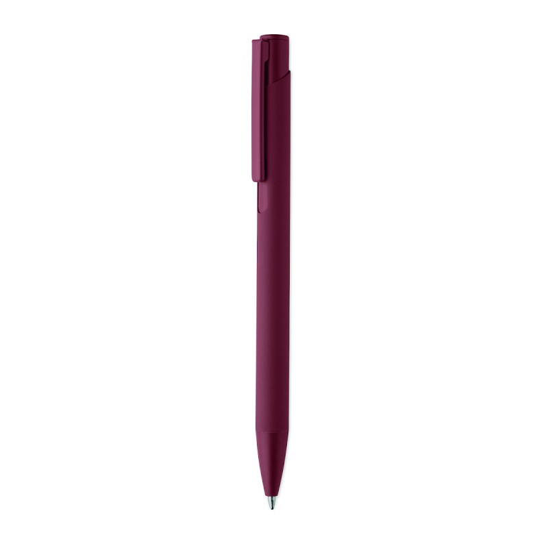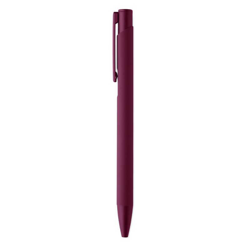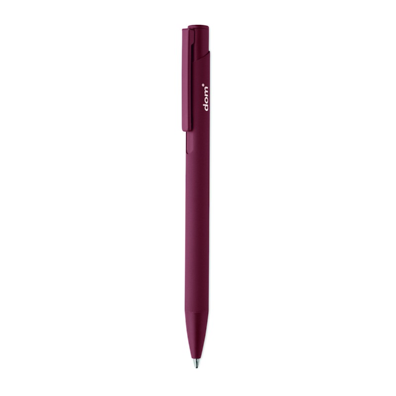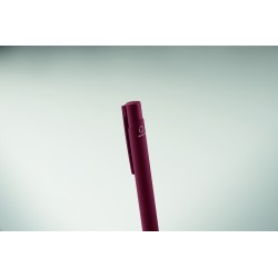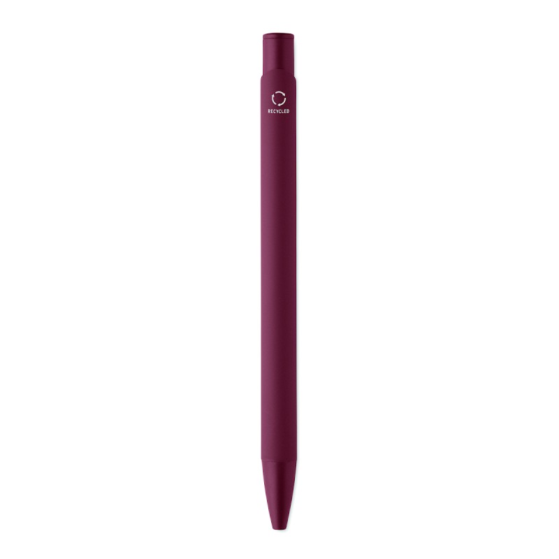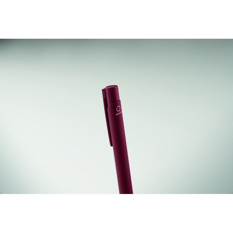 Stylo à poussoir en aluminium recyclé avec clip en fer et corps caoutchouté de couleur. Encre bleue.