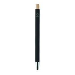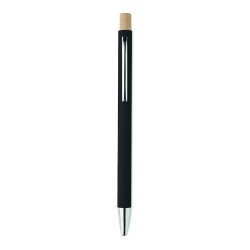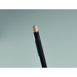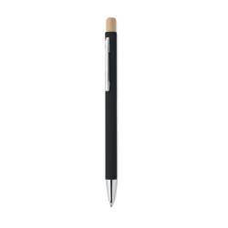 Stylo à bille en aluminium recyclé avec bouton poussoir en bambou. Pointe et clip argentés. Encre bleue.