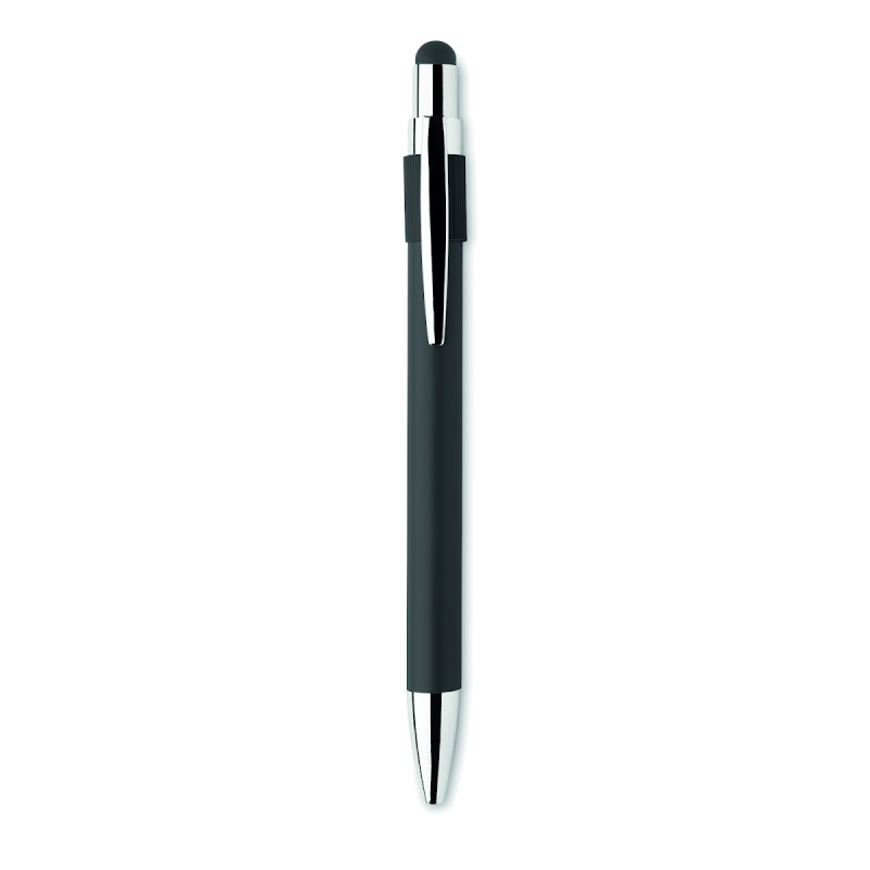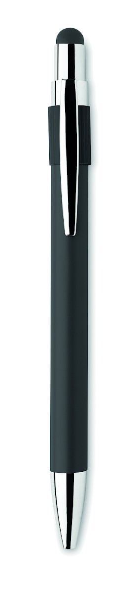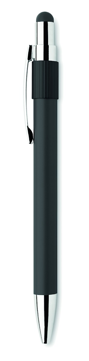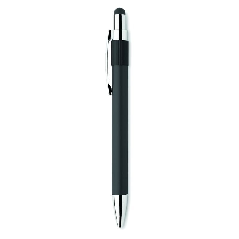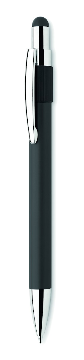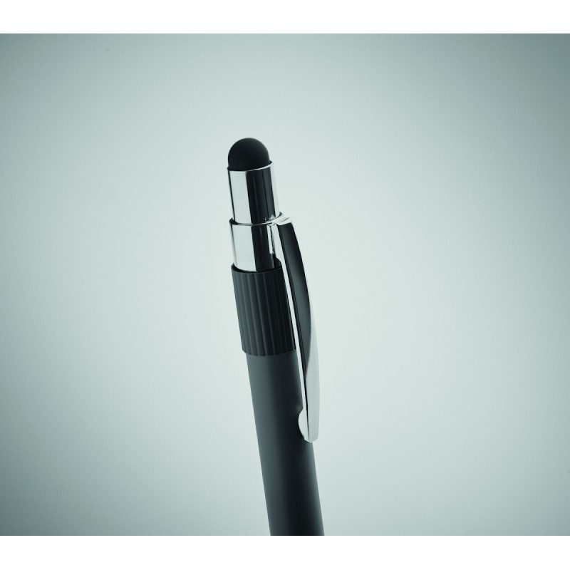 Stylo bille à poussoir en aluminium recyclé avec la fonction antistress spinner. Encre bleue.