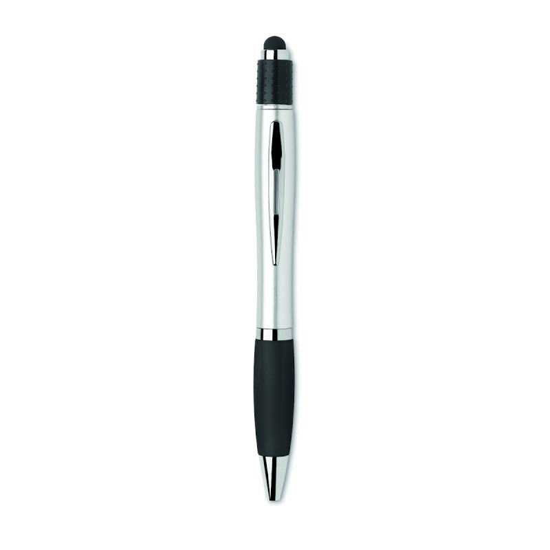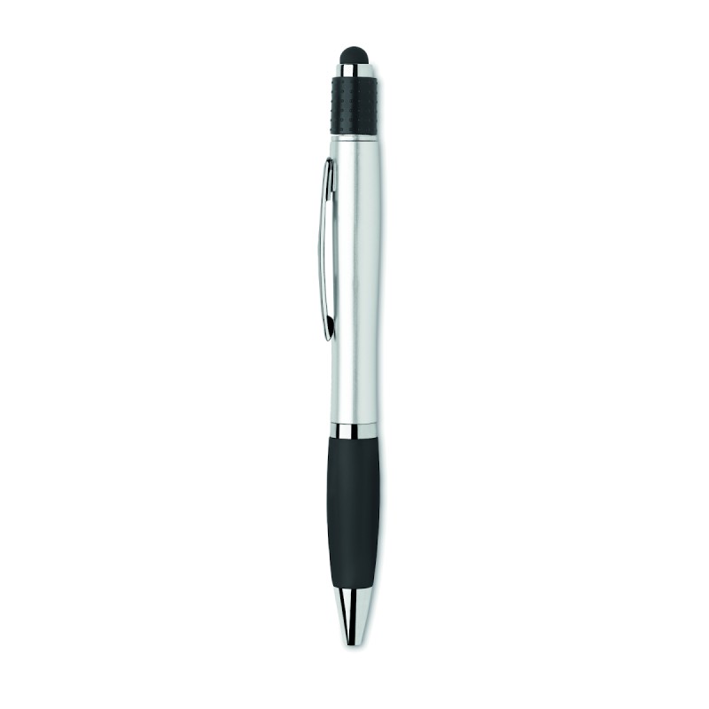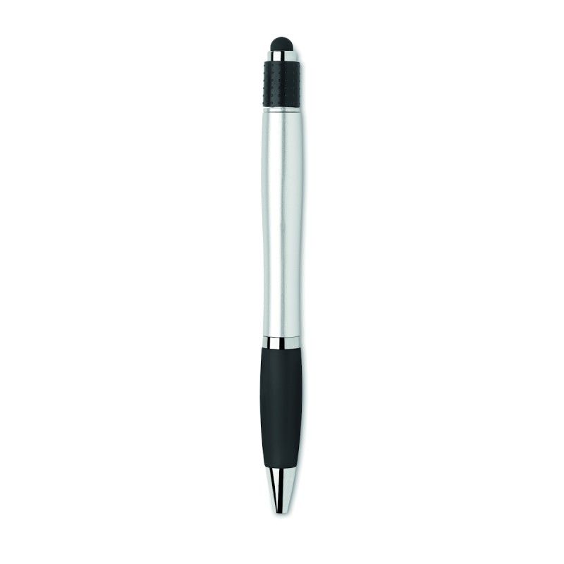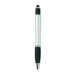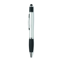 Stylo bille twist action stylus en ABS recyclé, fonction antistress spinner. Encre bleue.