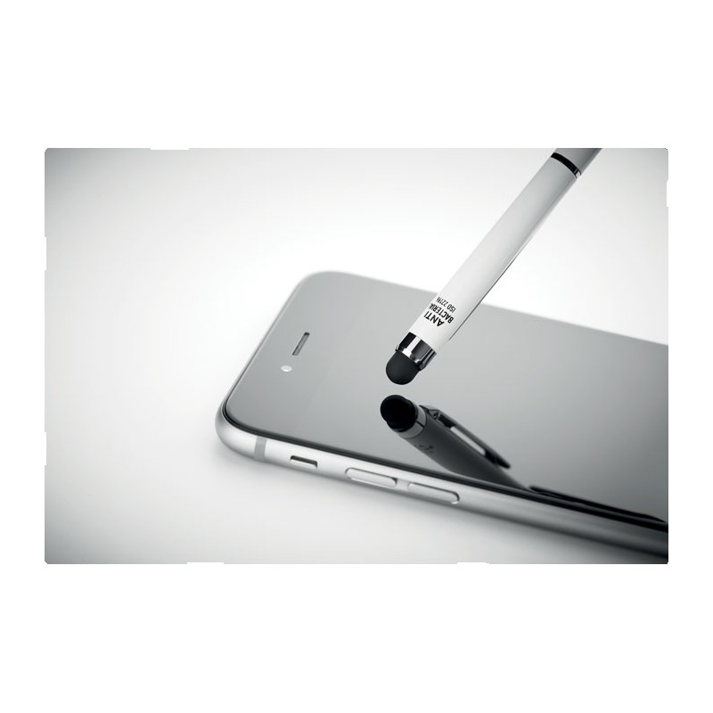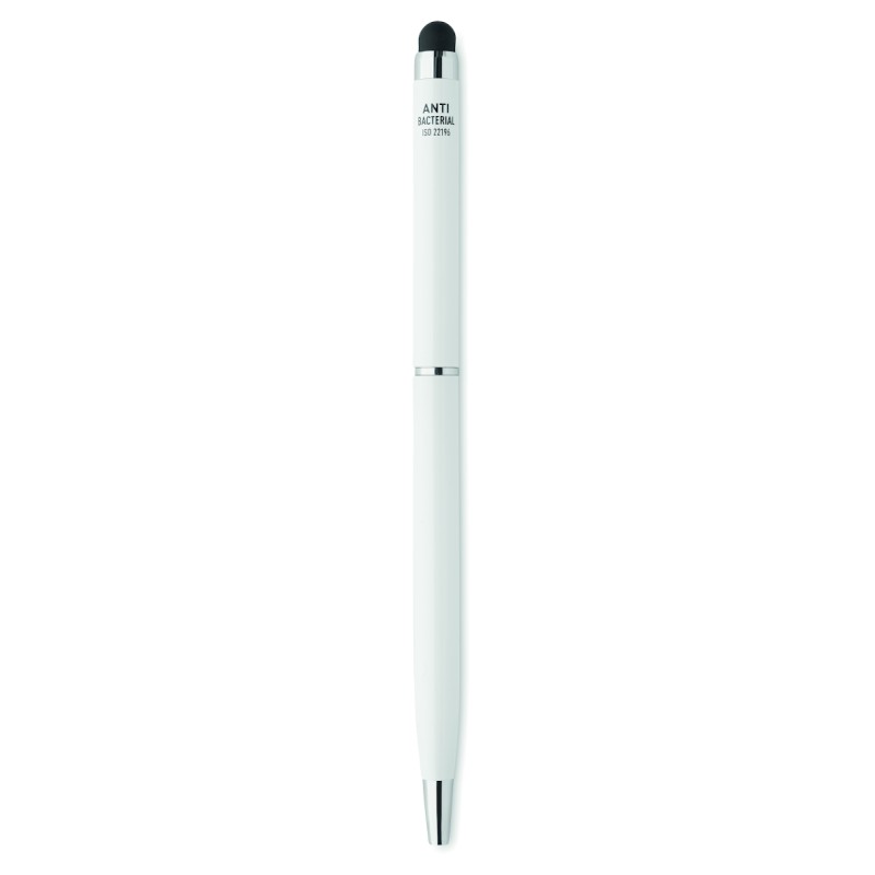 Stylo à bille twist en aluminium avec revêtement antibactérien et clip chromé brillant. ISO 22196. Encre bleue.