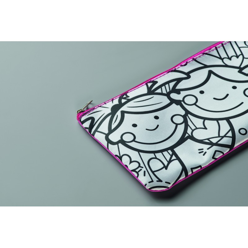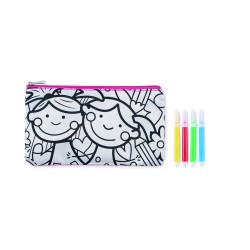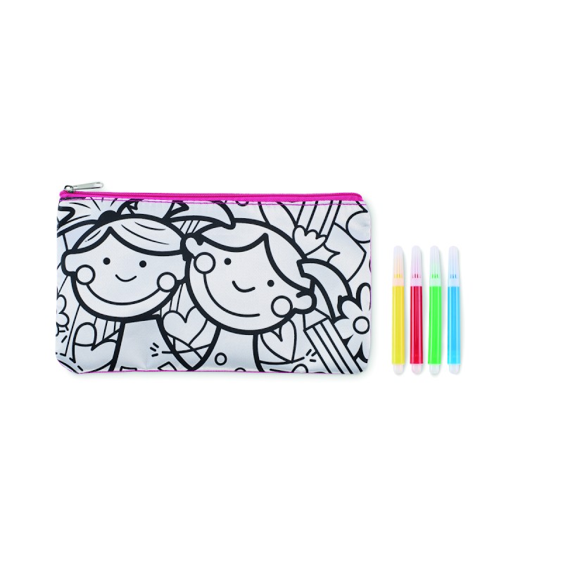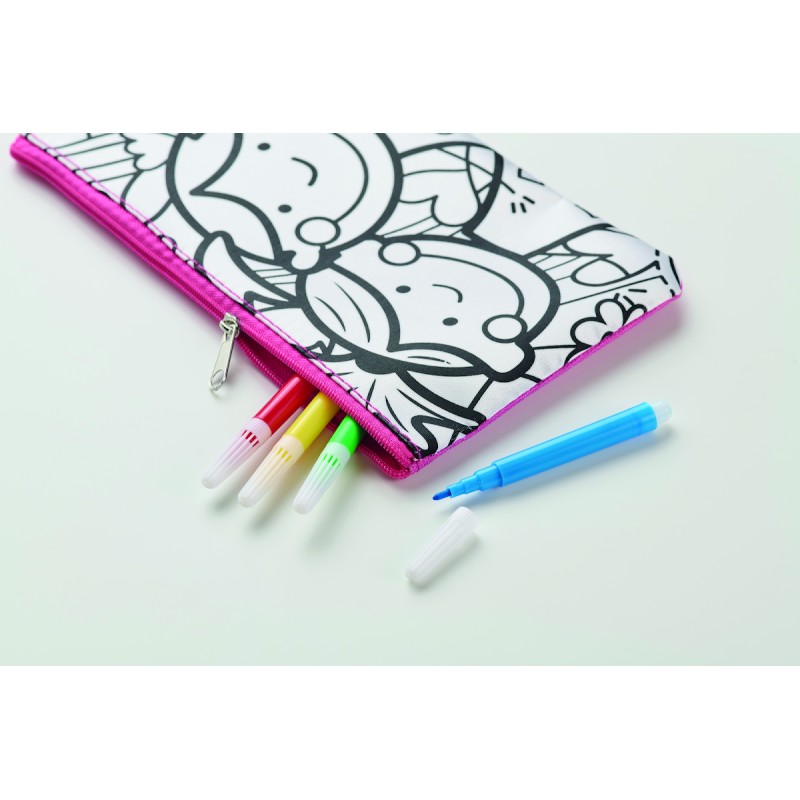 Trousse à crayons en polyester 600D à colorier avec 4 feutres.