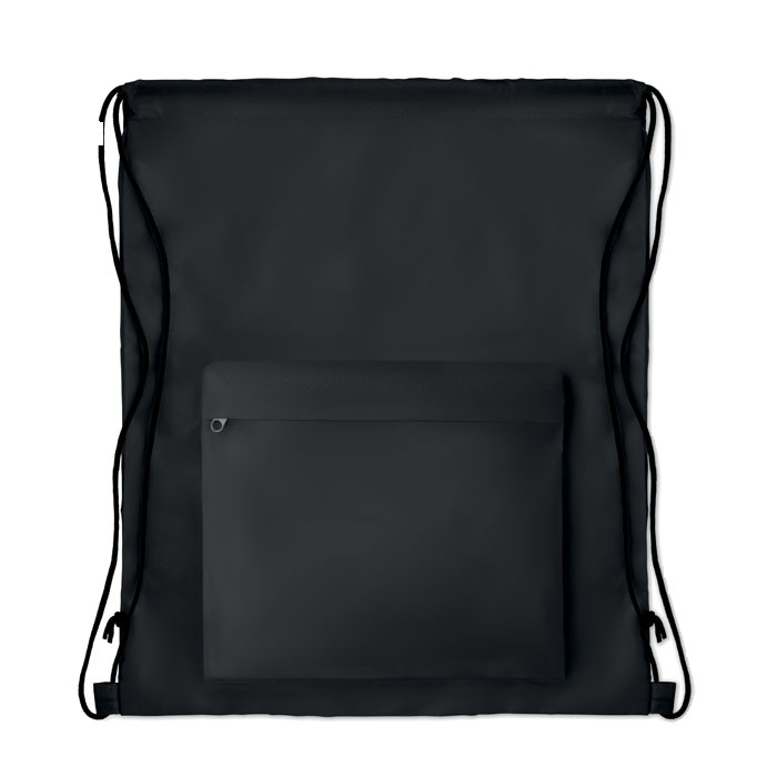 Grand sac cordelette 210D avec pochette zippée sur le devant.