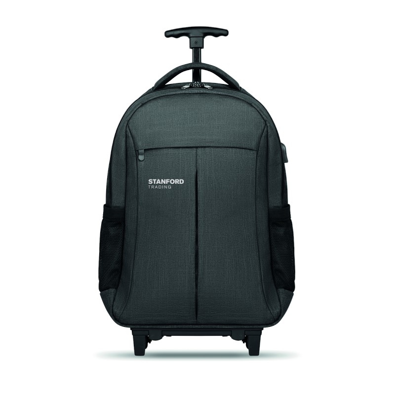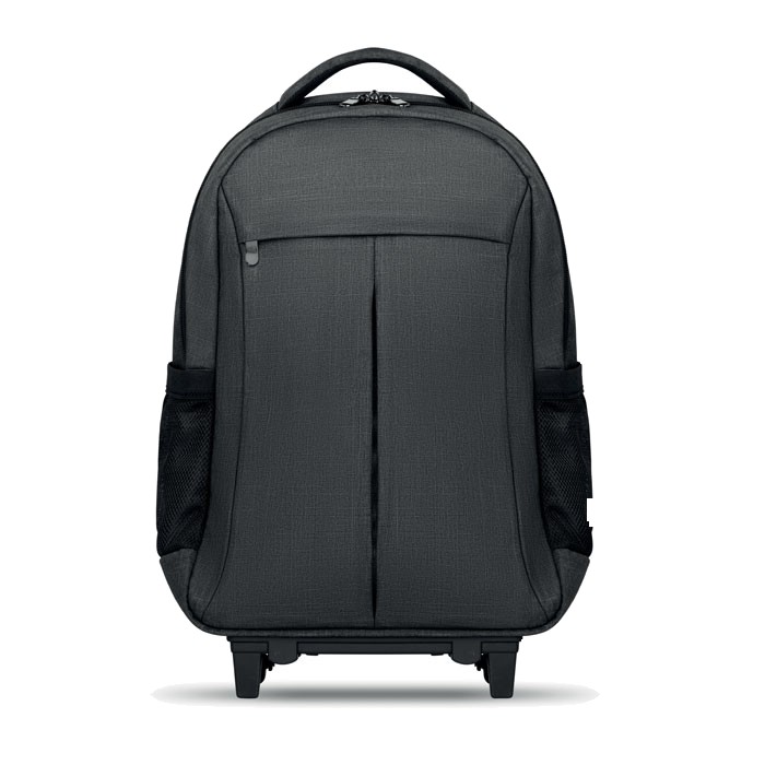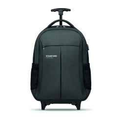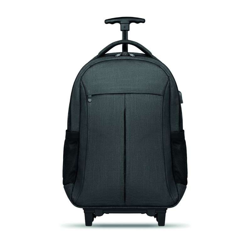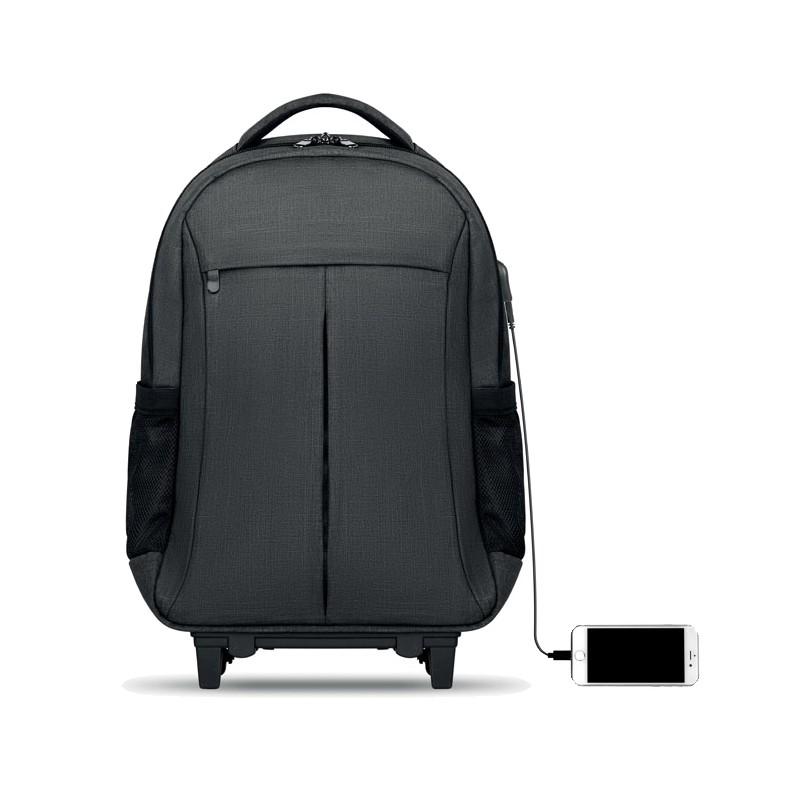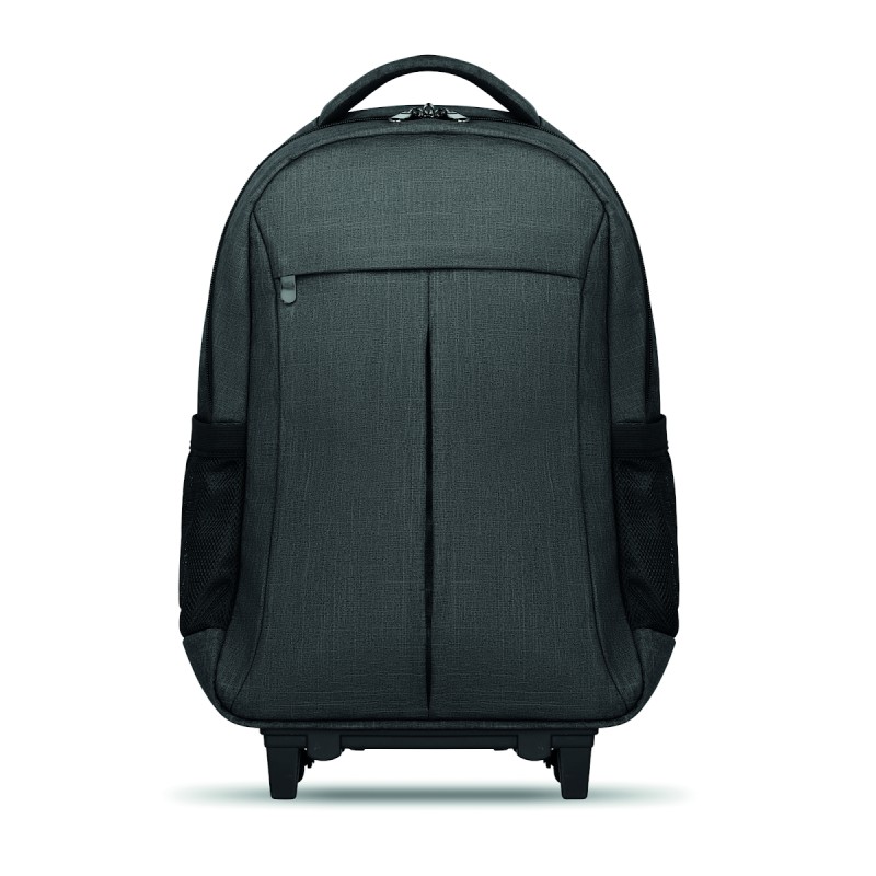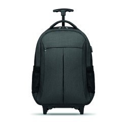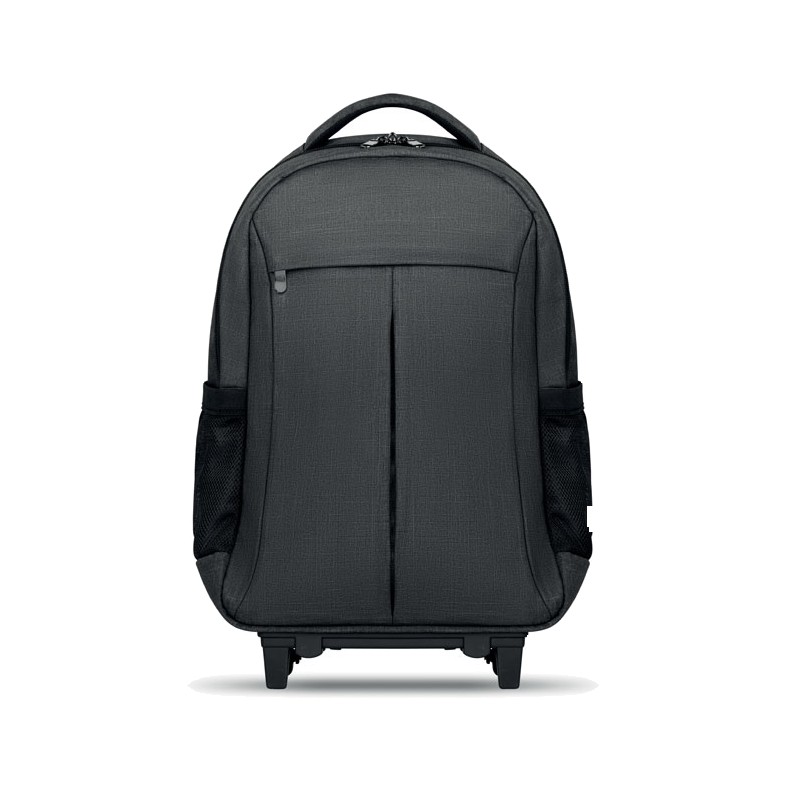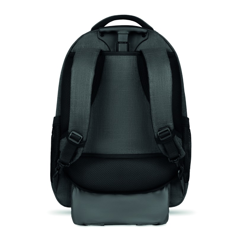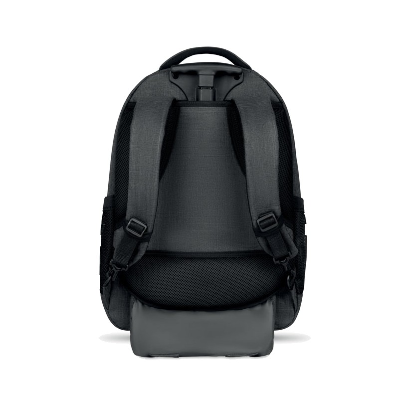 Sac à dos trolley avec dos renforcé en 360D, compartiment pour portable 15'', pochette zippée intérieure et protection des roues pour éviter les salissures, renfort pour ordinateur et tablette.