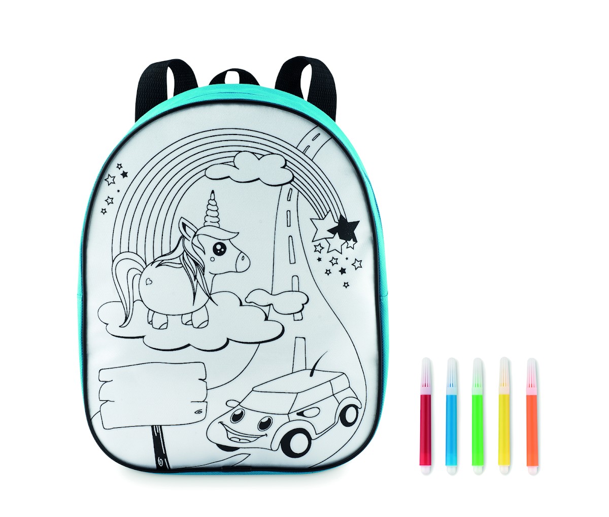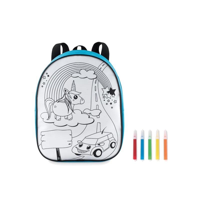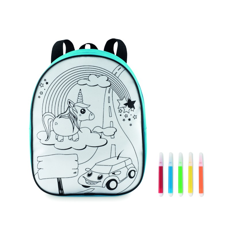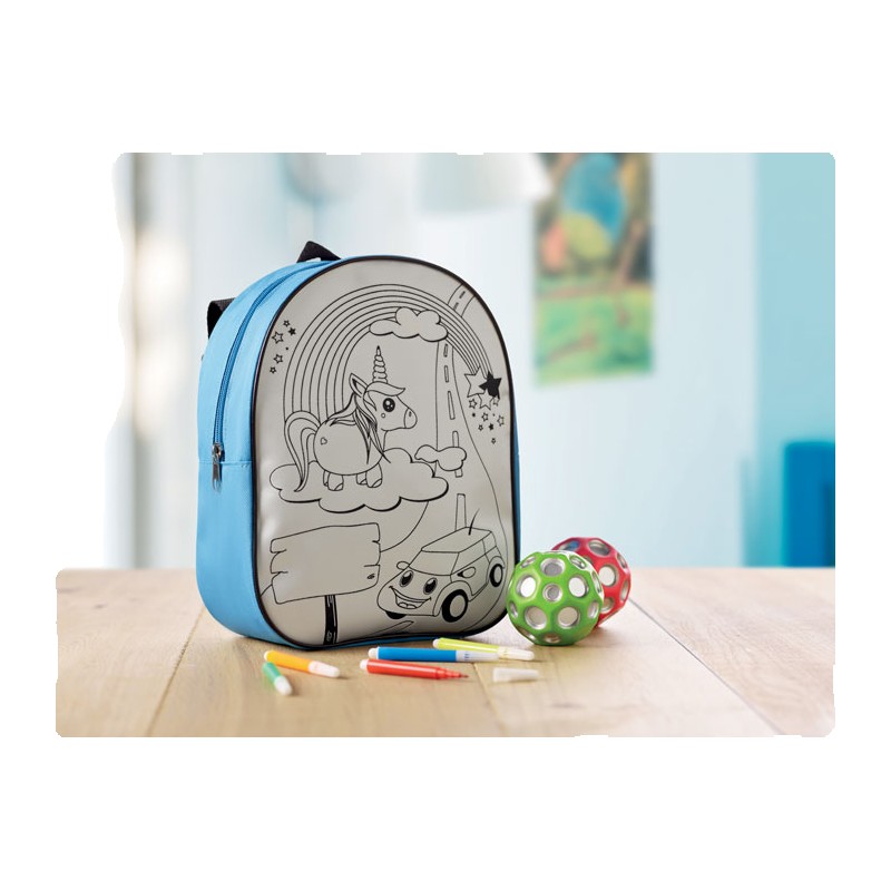 Sac à dos en 600D à colorier avec 5 feutres inclus.