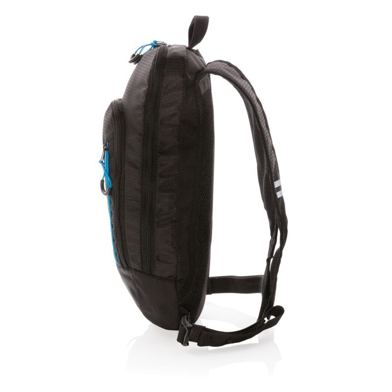 Sac à dos en polyester ribstop durable et au design minimaliste. Parfait pour les randonnées, les balades à vélo et toutes sortes d'aventures en plein air, ce petit sac à dos de randonnée comprend une poche frontale à fermeture éclair, un trou pour faciliter l'acheminement de votre tube d'hydratation et peut contenir une poche à eau. Avec un panneau arrière rembourré en filet et des bretelles rembourrées en filet, il est facile et confortable à transporter pour une utilisation tout au long de la journée. Sans PVC.