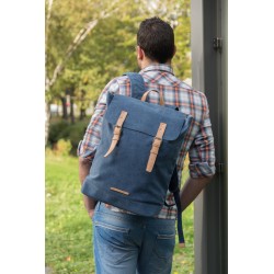 Sac à dos ordinateur en toile avec compartiment rembourré pour ordinateur portable jusqu'à 15.6". Le rabat supérieur se ferme par deux boucles magnétiques en similicuir. Sans PVC.