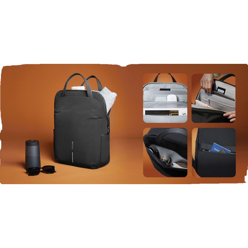 Sac à dos/Tote souple, compagnon élégant et polyvalent, conçu pour un transport au quotidien sans effort. Doté de l'innovante fermeture à glissière Duo-Zipper de XDDESIGN, il s'agrandit pour révéler deux styles distincts, combinant praticité et style. Avec un design antivol sécurisé et une fermeture zippée à glissière, vos affaires sont en sécurité à tout moment. Parfait pour le travail, l'université ou les loisirs, il offre 11 zones de rangement bien pensées pour garder vos objets essentiels organisés. L'extérieur minimaliste est fabriqué en nylon recyclé durable et léger, tandis que la doublure est conçue avec AWARE™, l'utilisation de tissu recyclé authentique est garantie. 42,64 % de contenu recyclé. Modèle déposé®