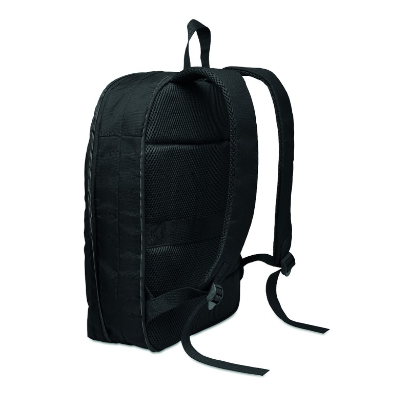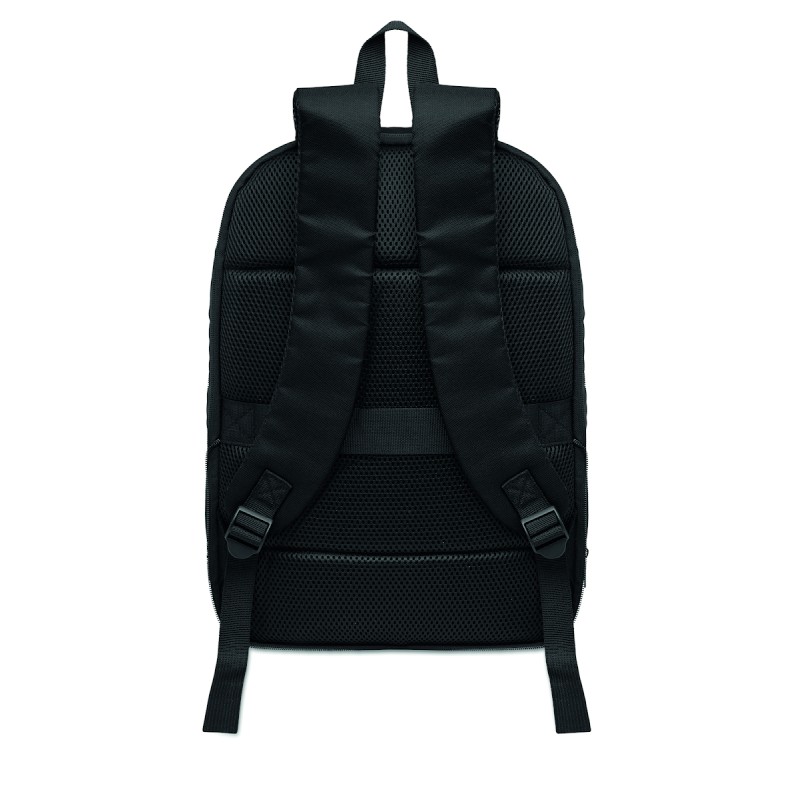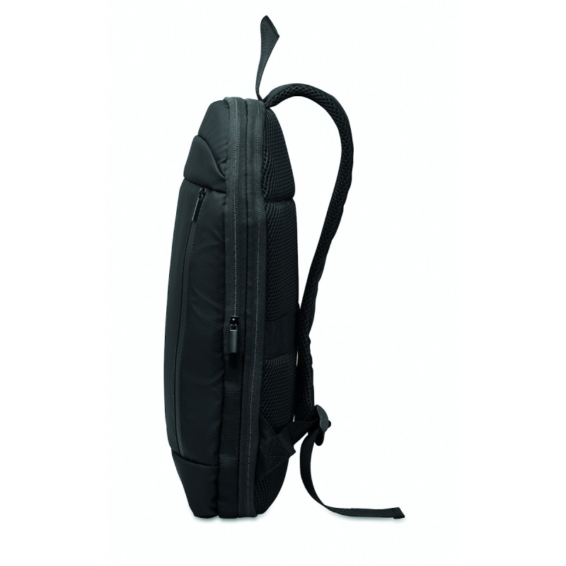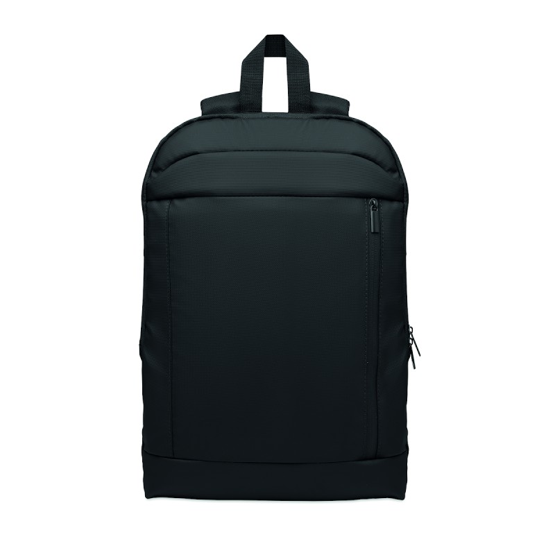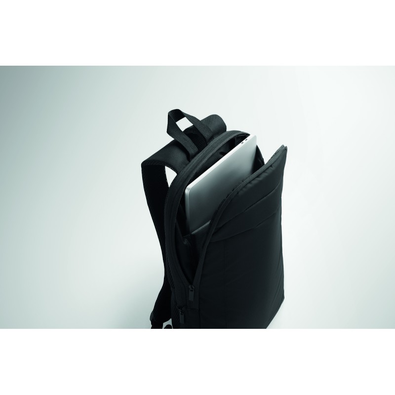 Sac à dos extensible pour ordinateur 16'' en polyester 600D RPET avec revêtement PU sur le devant et doublure en polyester RPET. Poche cachée zippéé et compartiment renforcé pour ordinateur portable, compartiment avant, dos en filet et sangle de bagage.