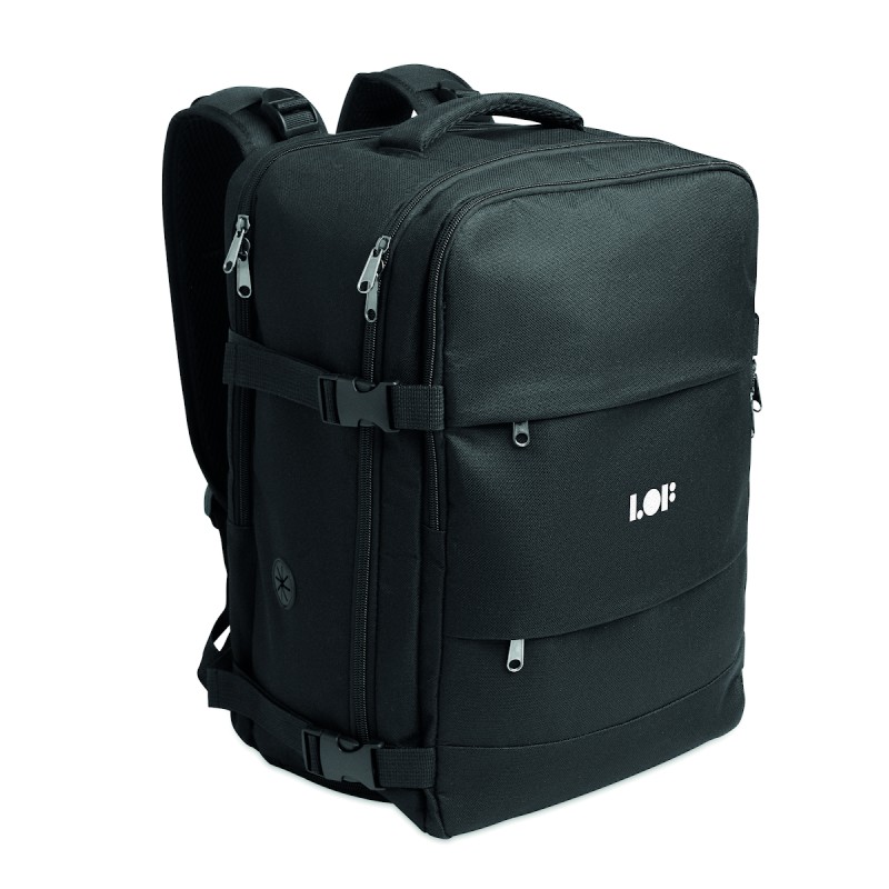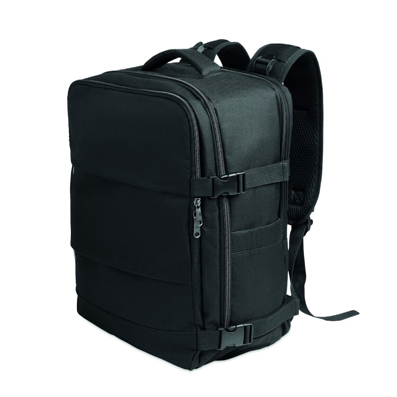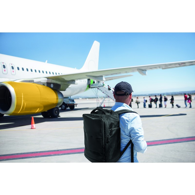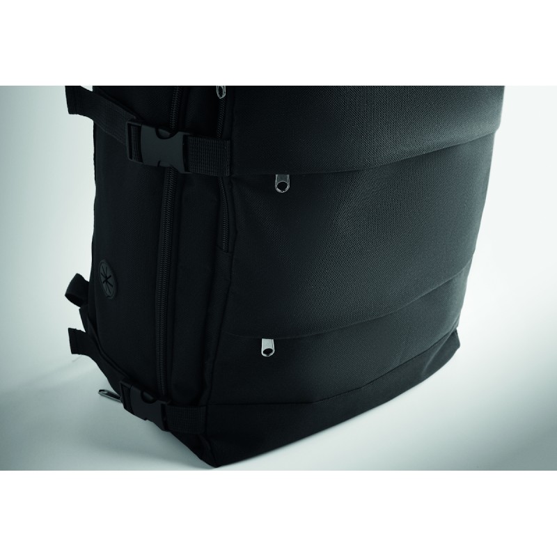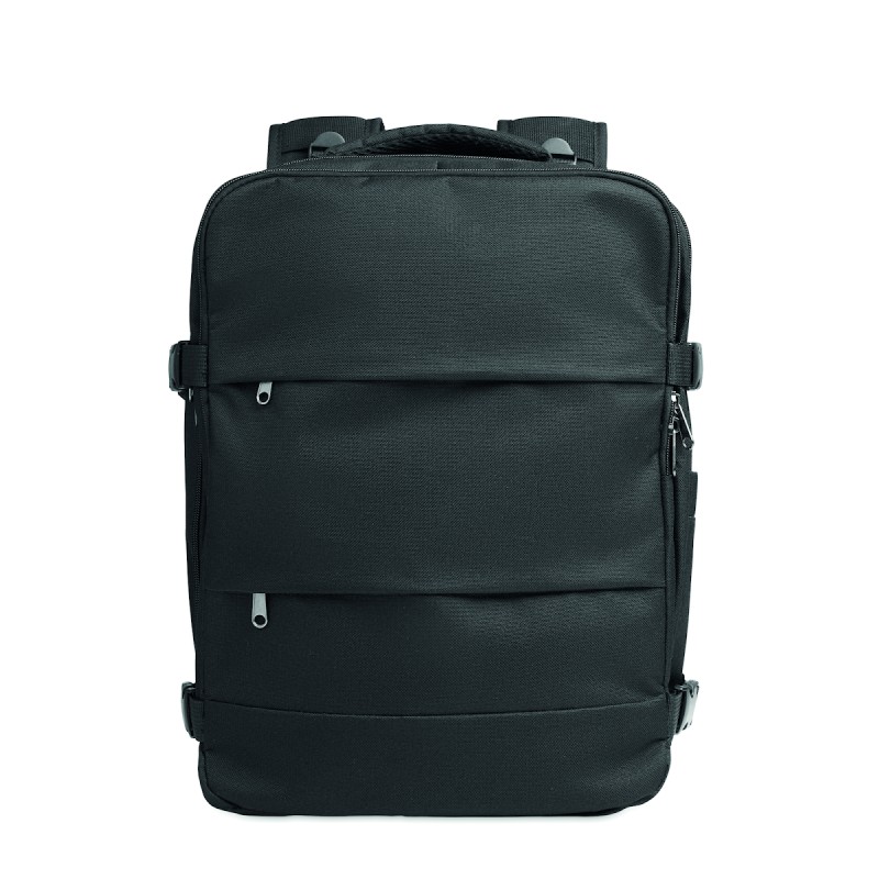 Sac à dos extensible cabine en polyester 600D RPET avec support PU : 1 division pour les chaussures, 1 poche rembourrée pour ordinateur 15'', des sangles en filet, 1 passant pour trolley.