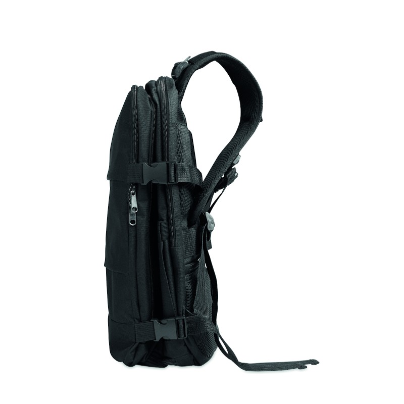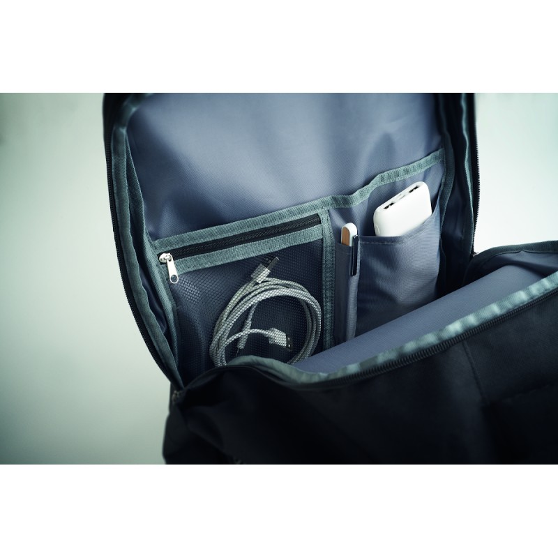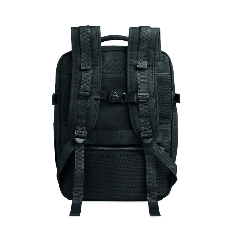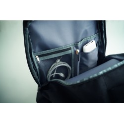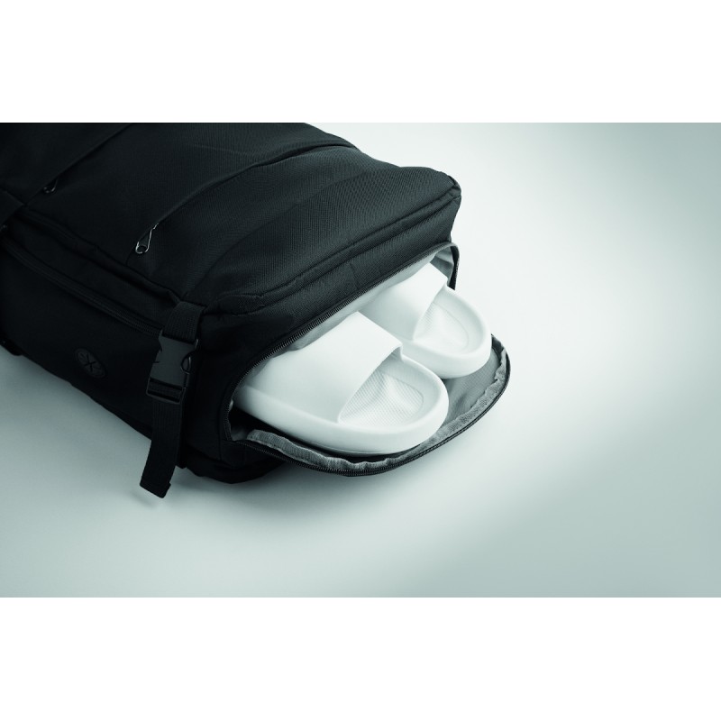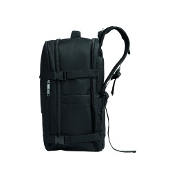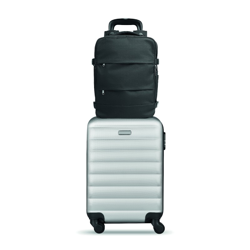 Sac à dos extensible cabine en polyester 600D RPET avec support PU : 1 division pour les chaussures, 1 poche rembourrée pour ordinateur 15'', des sangles en filet, 1 passant pour trolley.