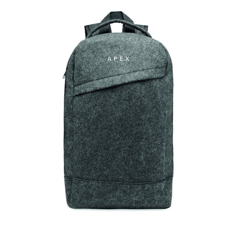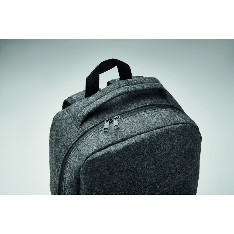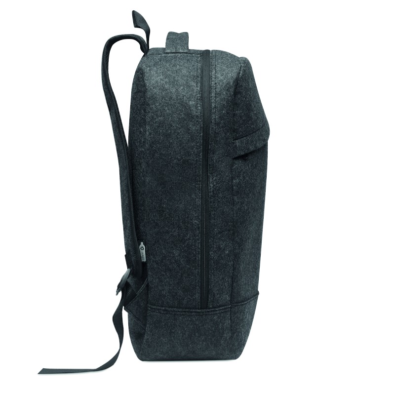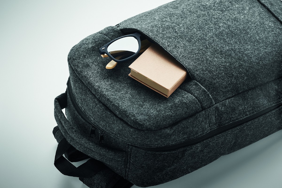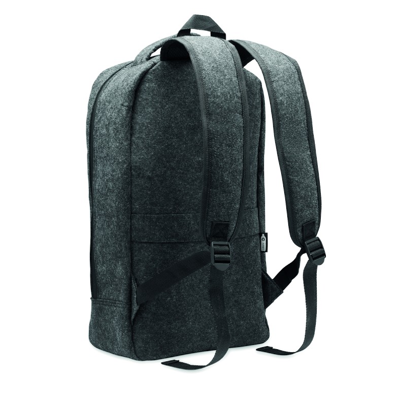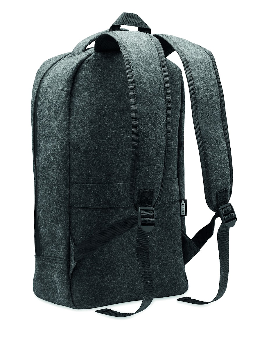 Sac à dos pour ordinateur portable 13 pouces en feutre RPET avec bandoulière et sangle rembourrées, avec un compartiment interne principal. Compartiment intérieur zippé et passant pour trolley au dos.