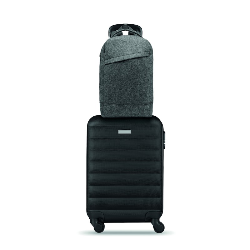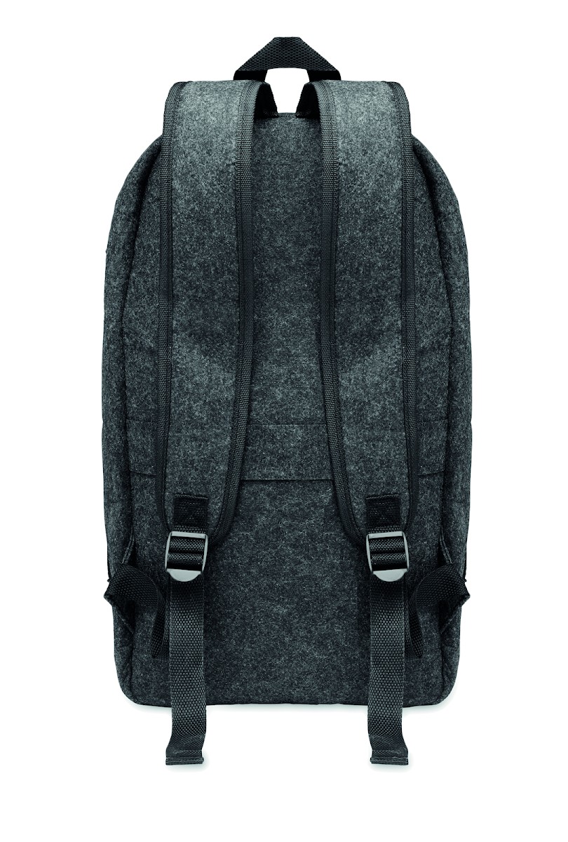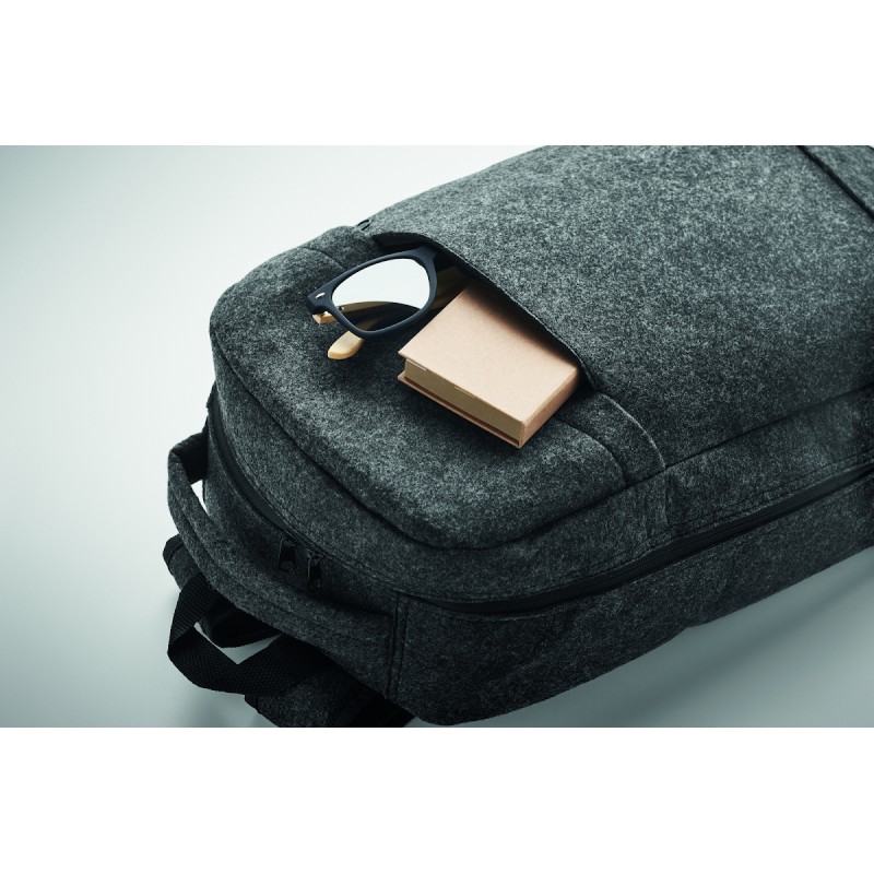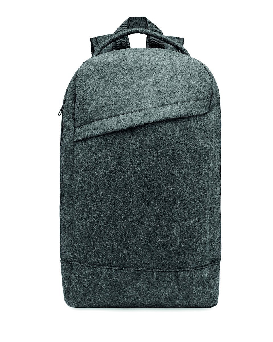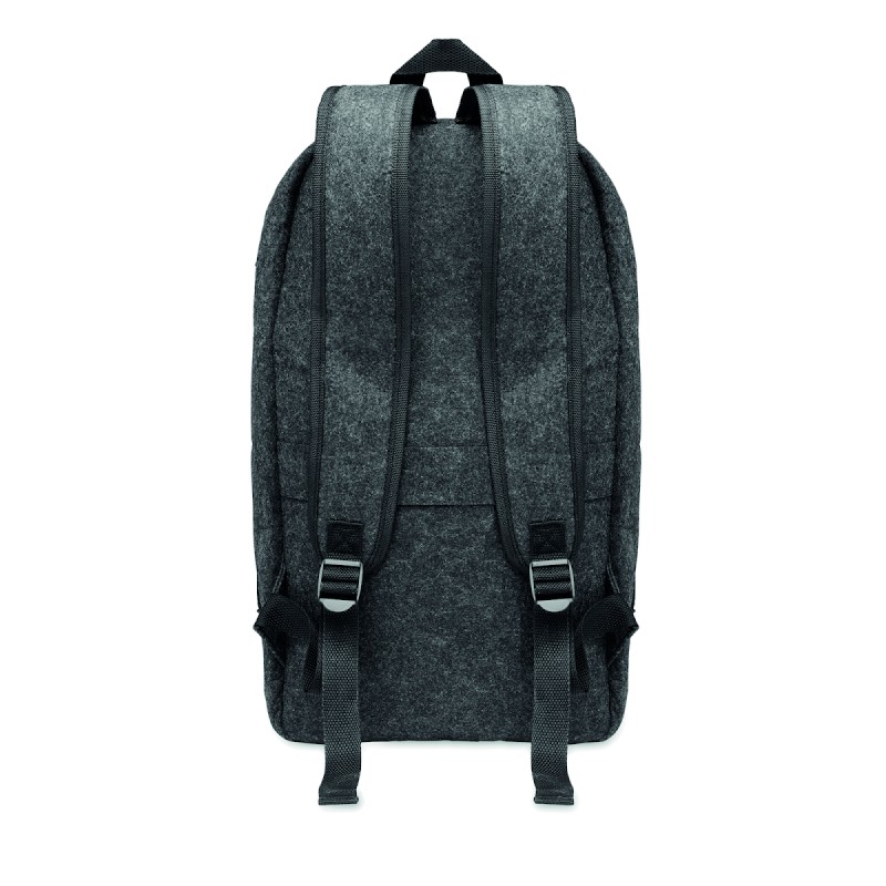 Sac à dos pour ordinateur portable 13 pouces en feutre RPET avec bandoulière et sangle rembourrées, avec un compartiment interne principal. Compartiment intérieur zippé et passant pour trolley au dos.