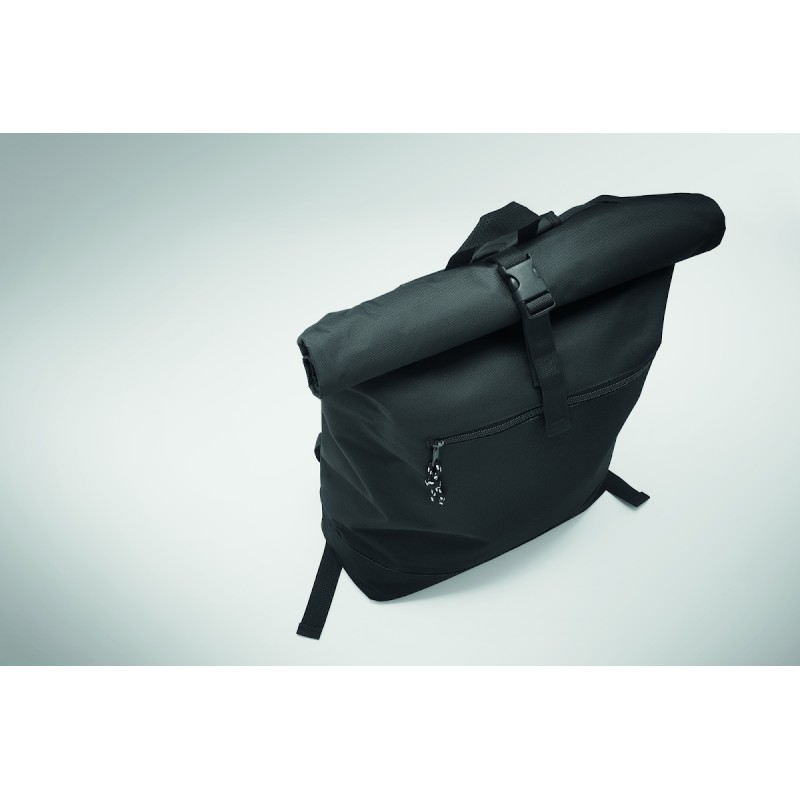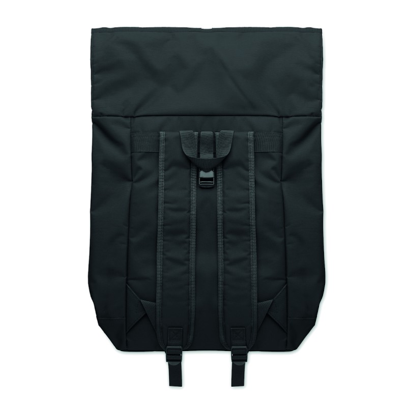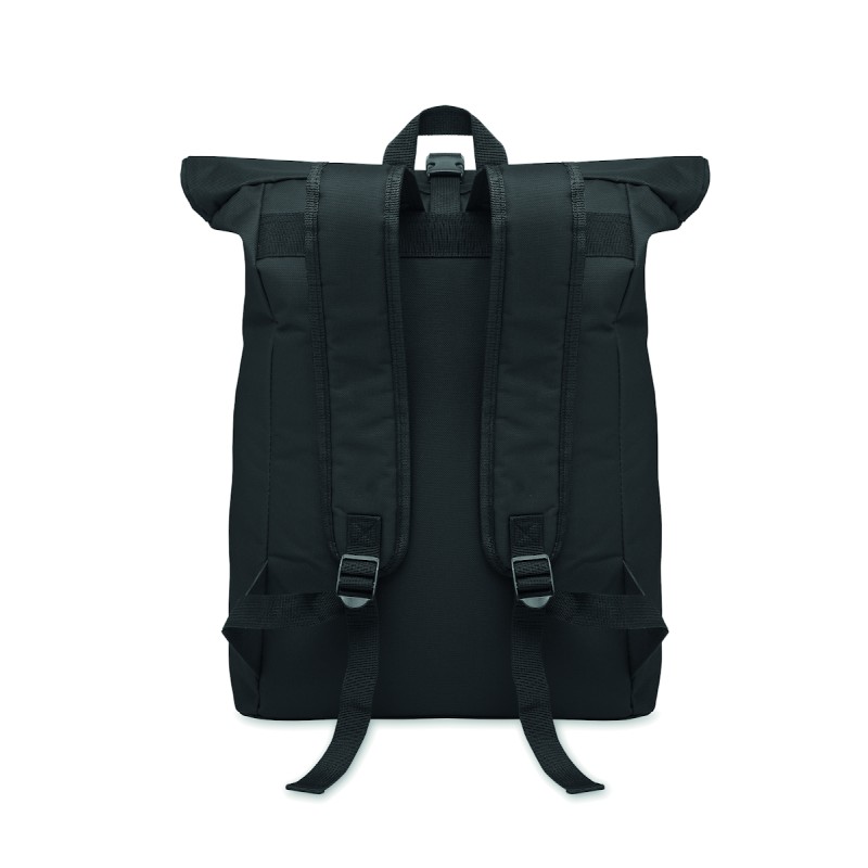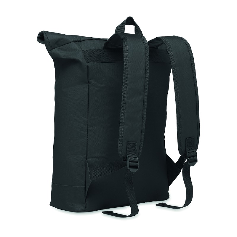 Sac à dos pour ordinateur portable de 15 pouces en polyester 600D avec dos rembourré et renforcement de la base. Poche frontale zippée. Doublure en 210D.