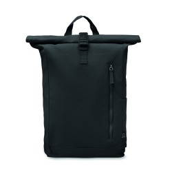 Sac à dos enroulable avec fermeture auto-agrippante en coton recyclé (80%) et polyester recyclé (20%) de 390 gr/m². Poche frontale zippée.