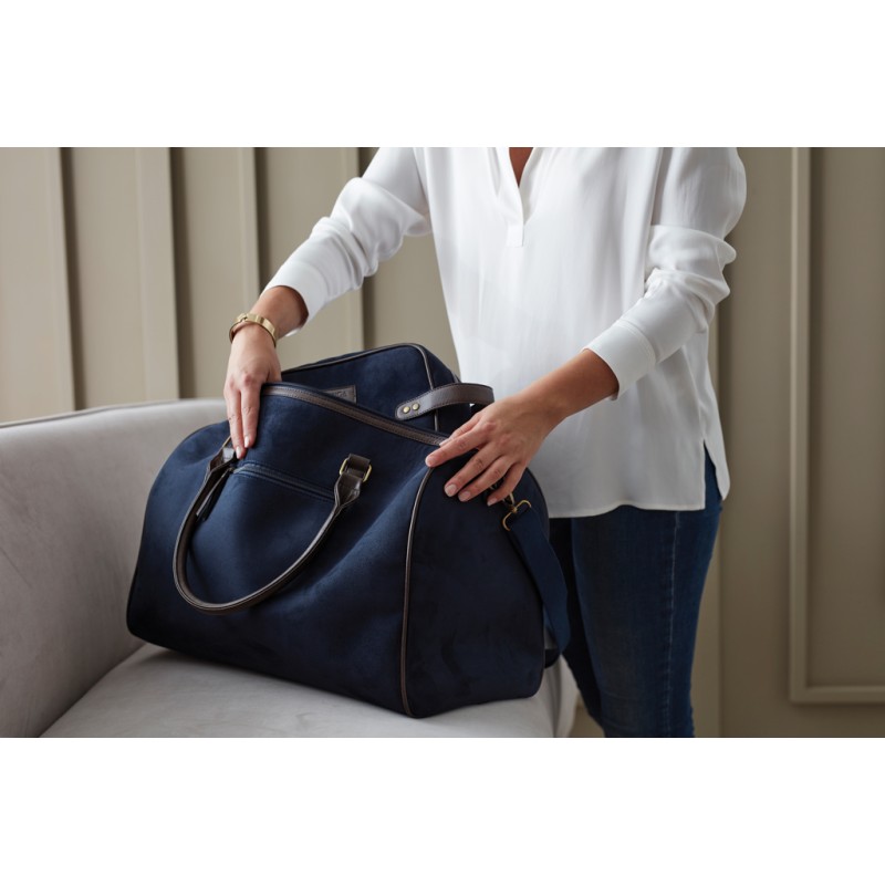 Sac weekend spacieux, parfait pour les voyages ou les excursions de courte durée. Le sac présente un design classique et intemporel en imitation daim et est décoré de détails en laiton. Un compagnon de voyage idéal et facile pour les jours où vous êtes constamment en déplacement.