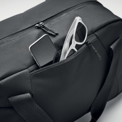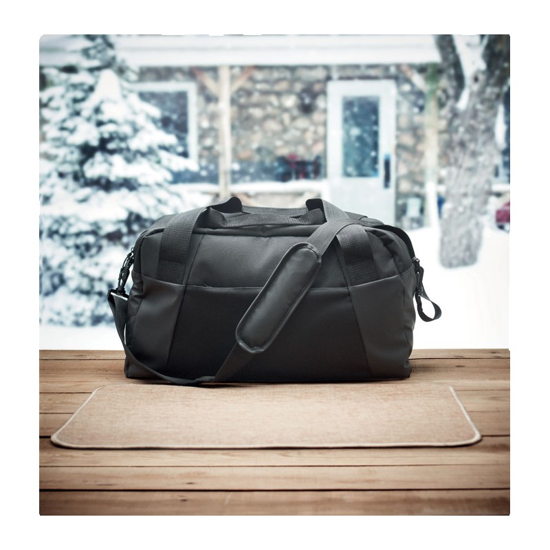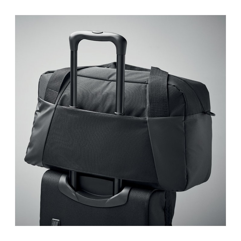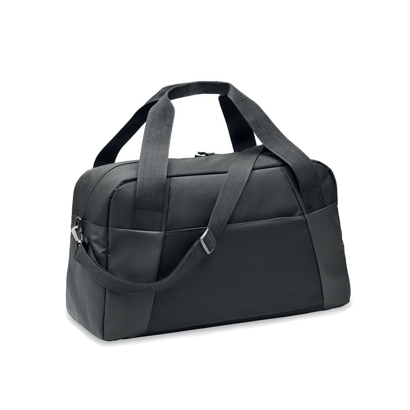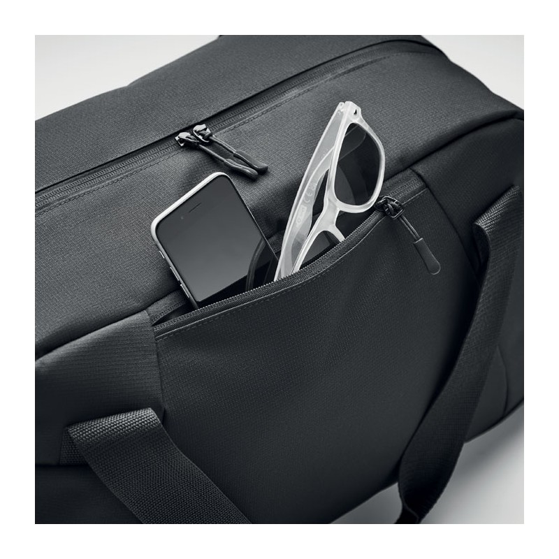 Sac de voyage-sport en 300D ripstop avec détails en PU et poche frontale zippée. Il dispose d'une poche intérieure et de 2 petits compartiments rembourrés. Porte-trolley à l'arrière.