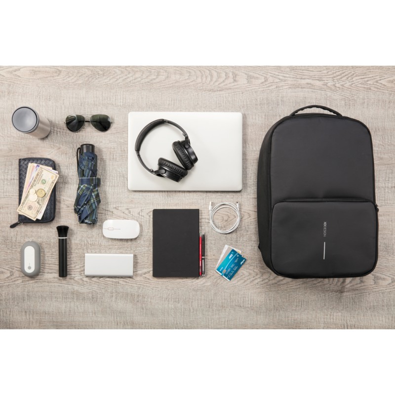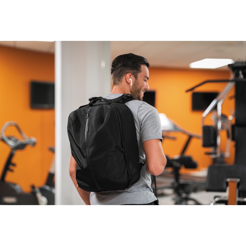 Flexible et pratique, le sac de sport XD Design Flex est le premier sac à dos et sac de sport en un, facile à transformer en agrandissant simplement la poche avant, de 16 à 24 litres. La conception antivol sans accès frontal, les fermetures à zip dissimulées dans le compartiment principal vous permettront de transporter vos affaires professionnels en toute sécurité, et la poche au dos protégée par anti-RFID vous permettra de ranger en toute sécurité votre portefeuille, votre téléphone portable ou vos cartes de crédit. En outre, ce sac à dos vous permet de charger votre telephone grâce à un port USB situé sur la bandoulière, où vous trouverez également un porte-lunettes de soleil. Fabriqué à partir de RPET avec la technologie Aware®. Le sac à dos idéal, que vous vous rendiez au travail, à l'université ou à la salle de sport. 42% de contenu recyclé. Modèle déposé®.
