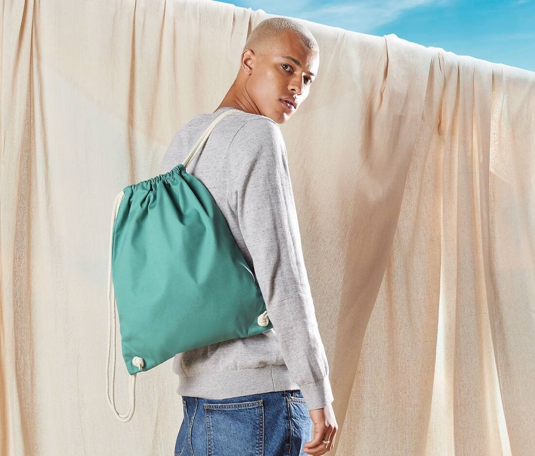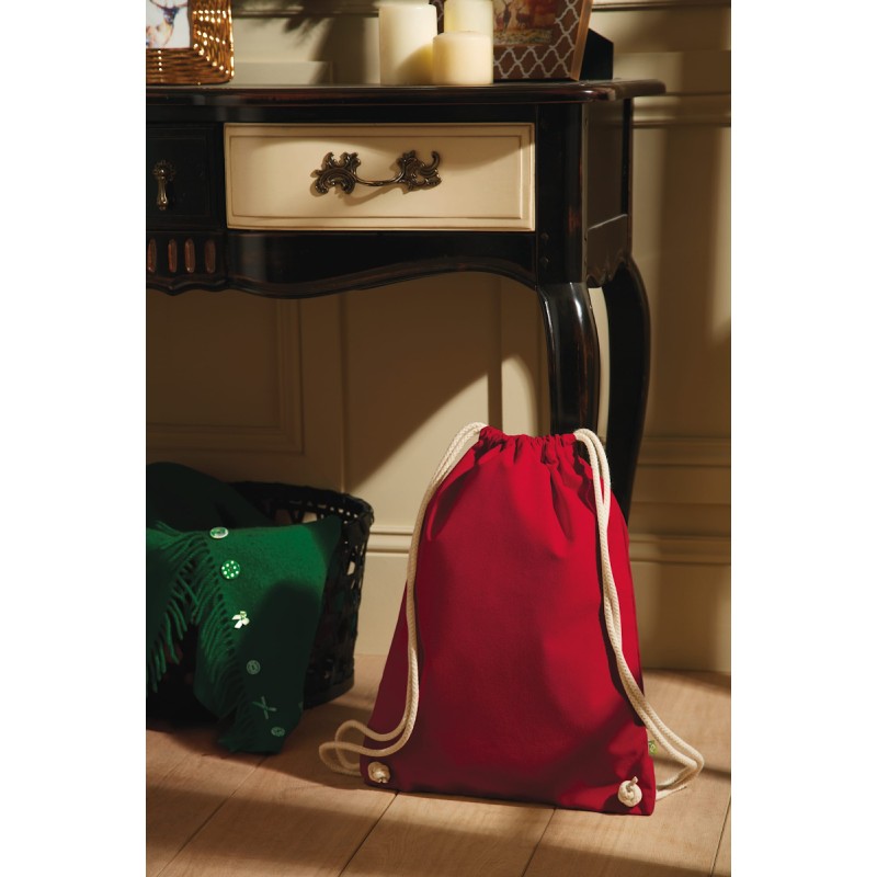 100% coton. Toile de coton biologique. Tissu épais de qualité supérieure. Fermeture par gros cordon.