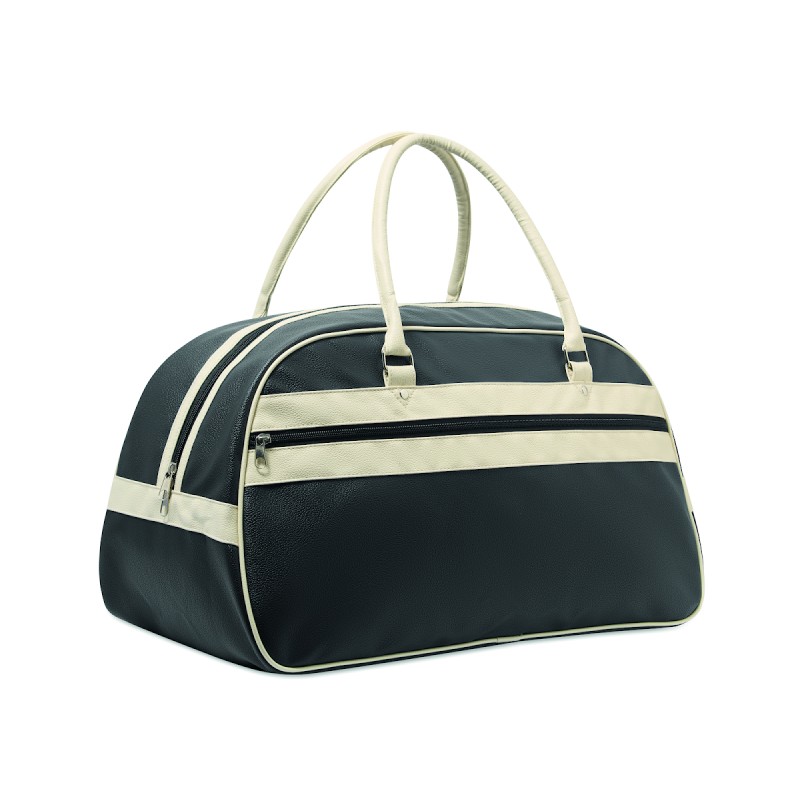 Sac de sport en PU, doublé à l'intérieur, compartiment principal et poche zippée, poignées robustes, incrustation à la base et crampons. Capacité d'environ 21,5 litres.