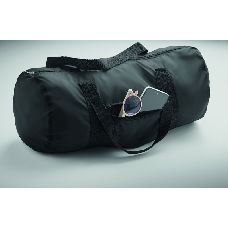Sac de sport en polyester RPET 190T avec pochette zippée sur le devant. Capacité de 20 litres.
