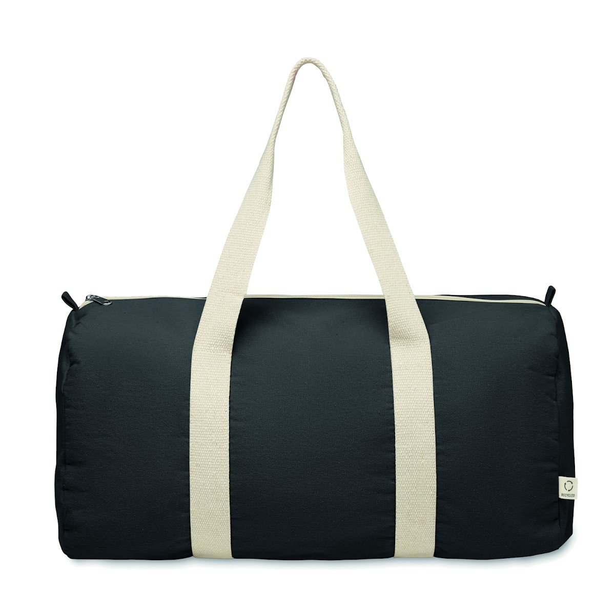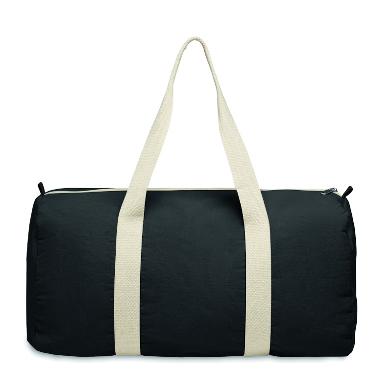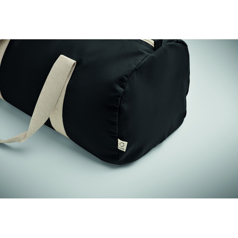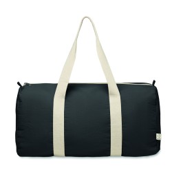 Sac de sport ou de voyage avec compartiment latéral zippé et poche intérieure zippée en coton recyclé (80%) et polyester recyclé (20%) de 320 gr/m² avec longues poignées.