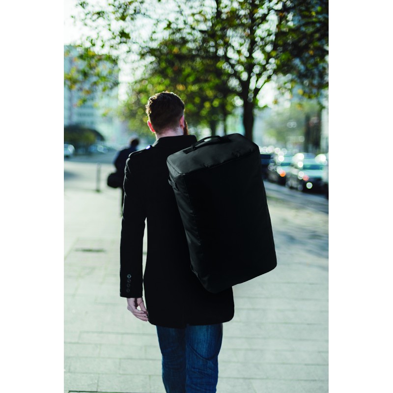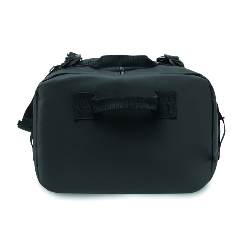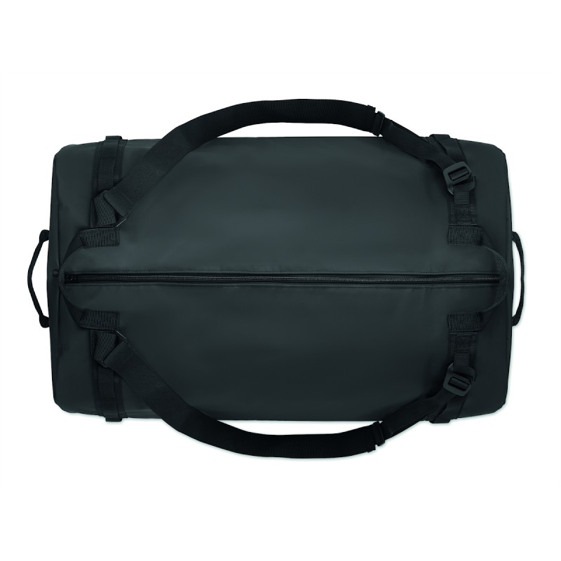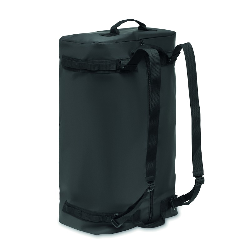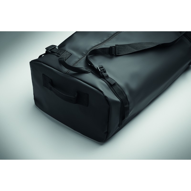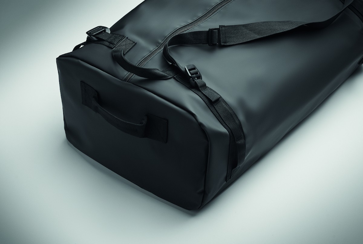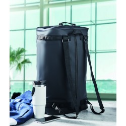 Grand sac de sport ou de voyage pouvant également être utilisé comme sac à dos, en tarpaulin 50C avec compartiment intérieur zippé. Il est doté d'une bandoulière détachable et réglable et d'une doublure en RPET.