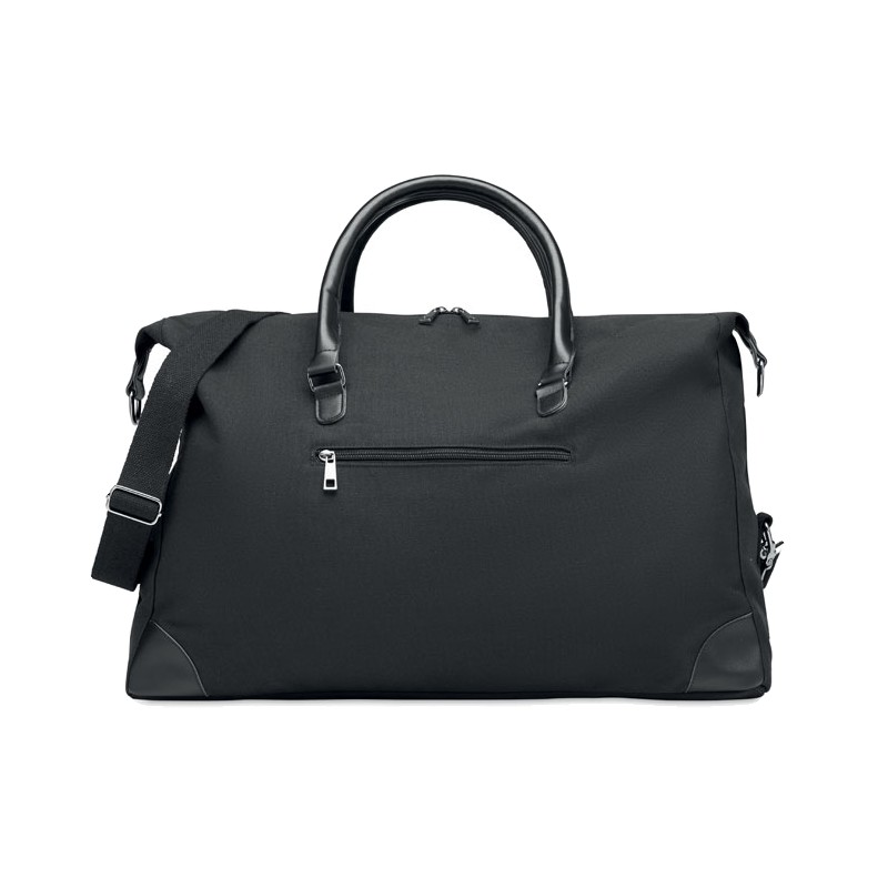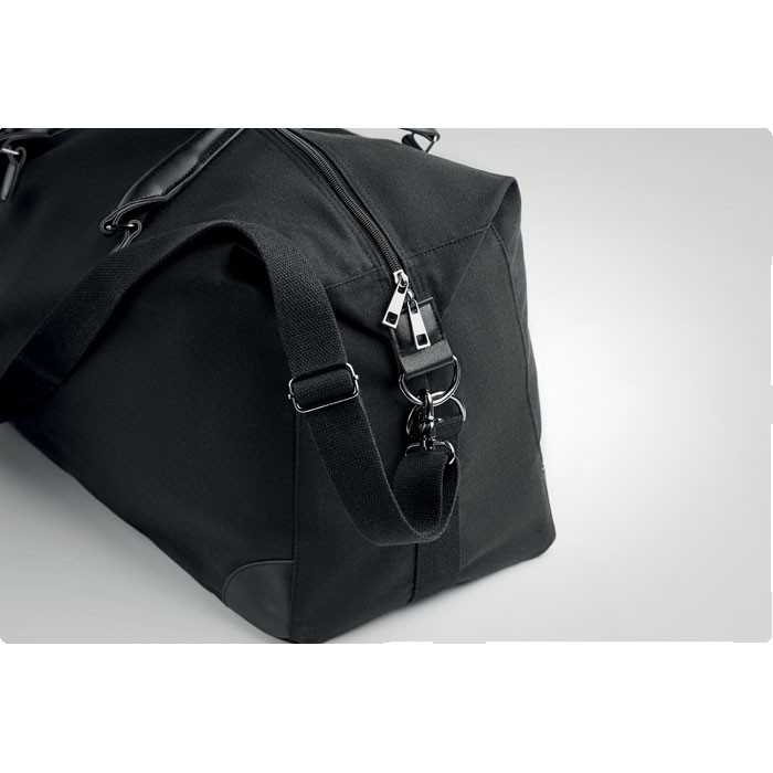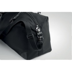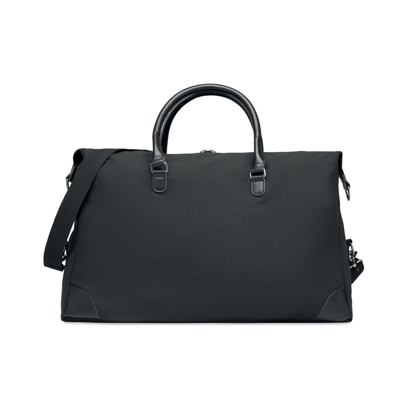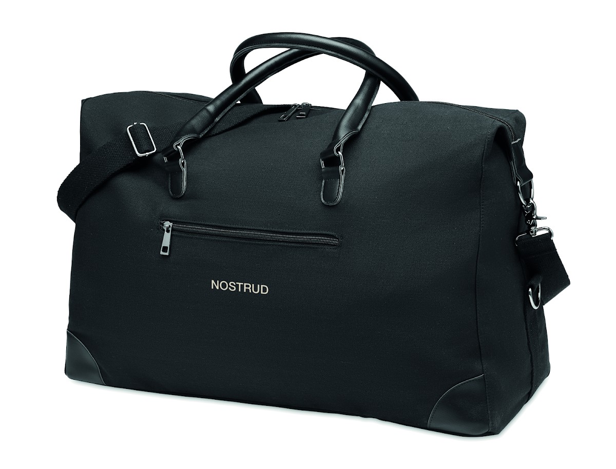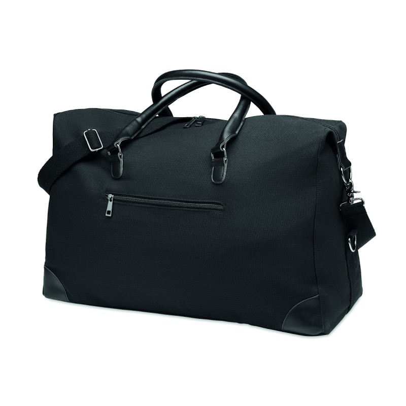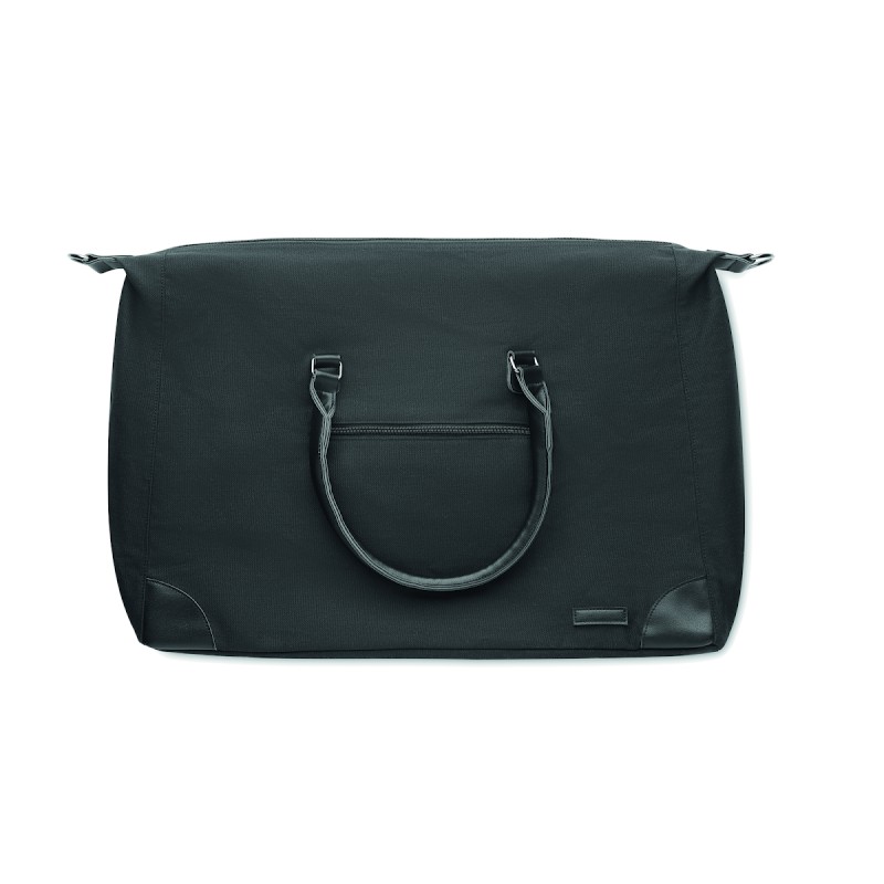Sac week-end en toile 340 gr/m² avec détails en PU recyclé. La doublure est en RPET 210D. Sangles solides, réglables et détachables incluses. Taille parfaite pour un bagage à main.