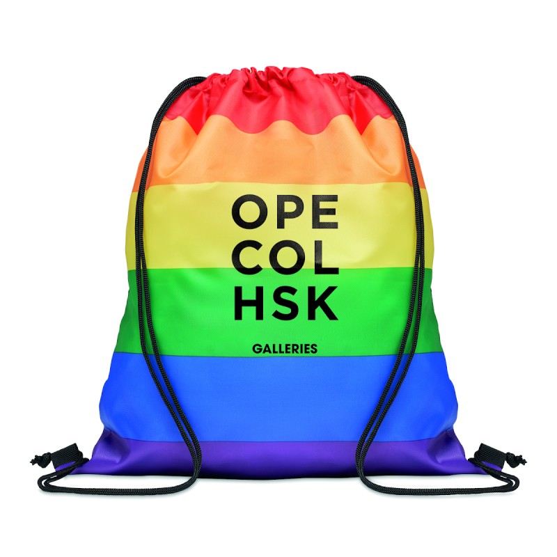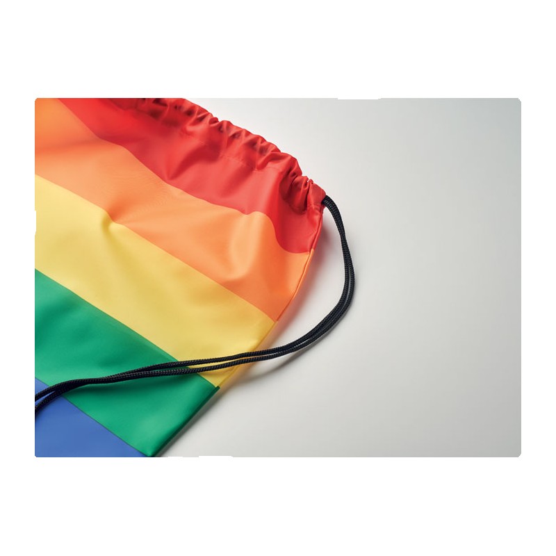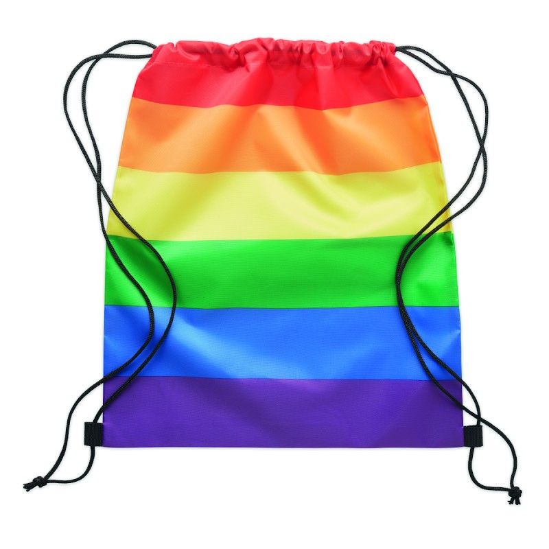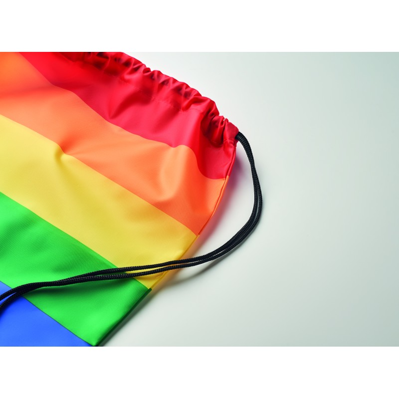 Sac à cordon arc-en-ciel en polyester RPET 210D avec cordons en PP.