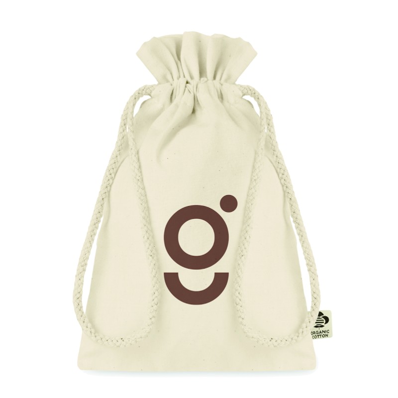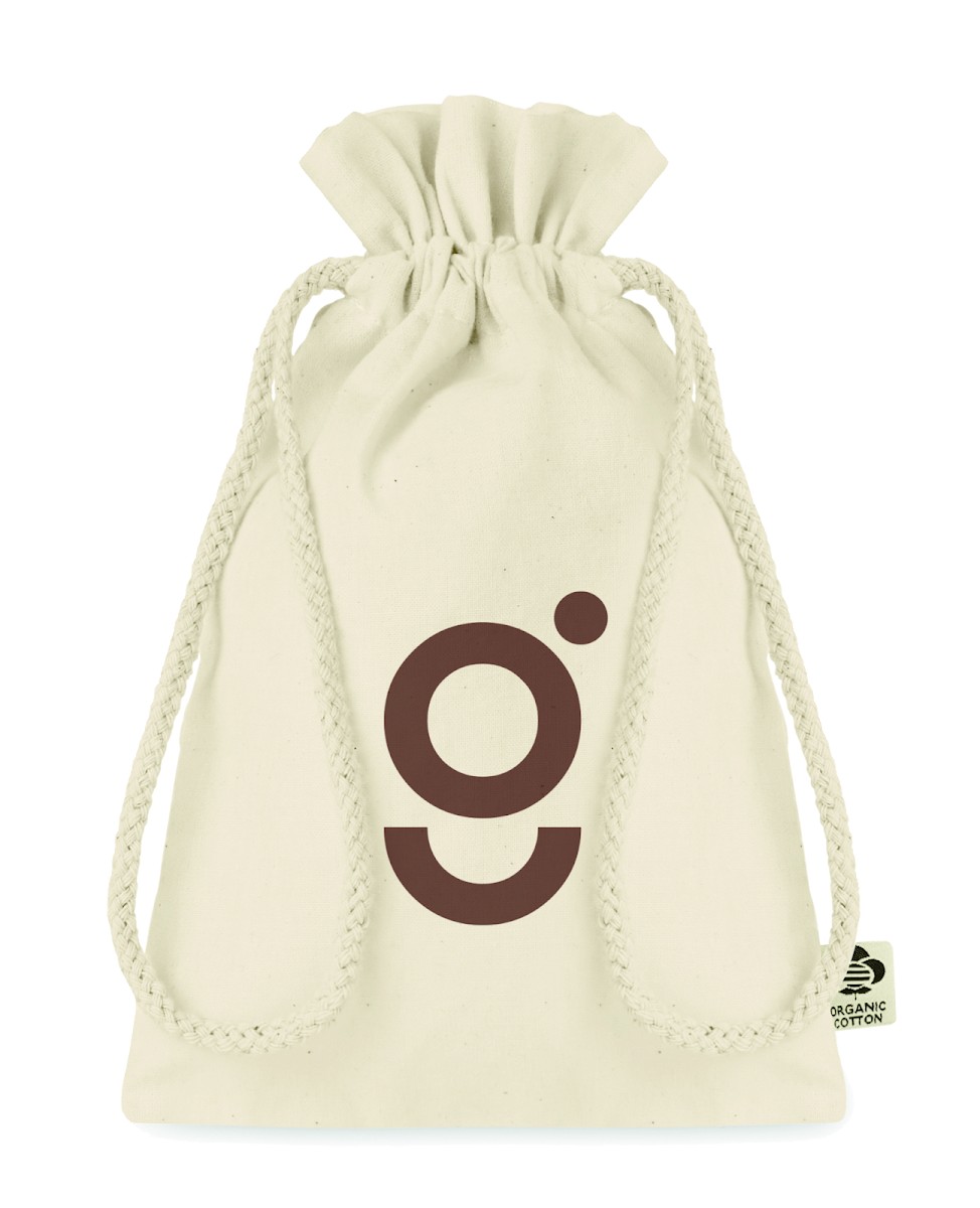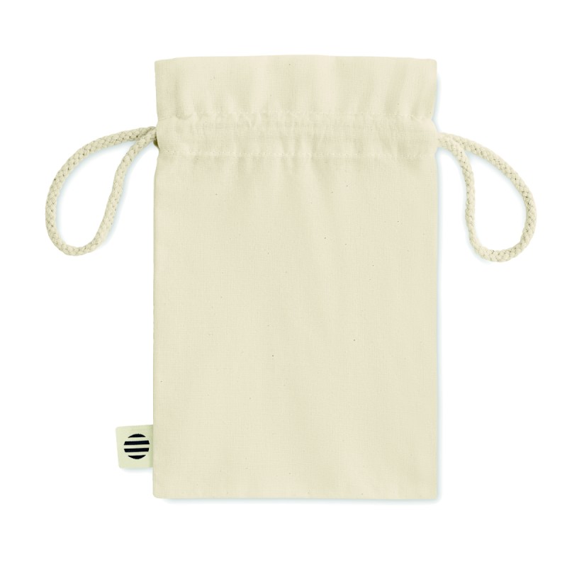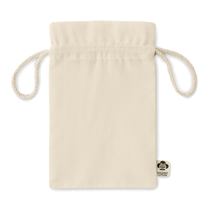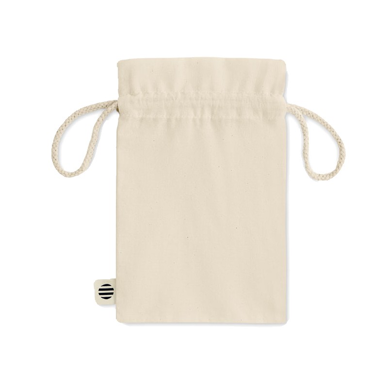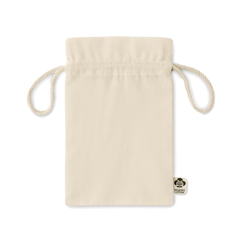 Petit sac à cordon en coton biologique. Taille environ 14x22 cm. 105 gr/m².