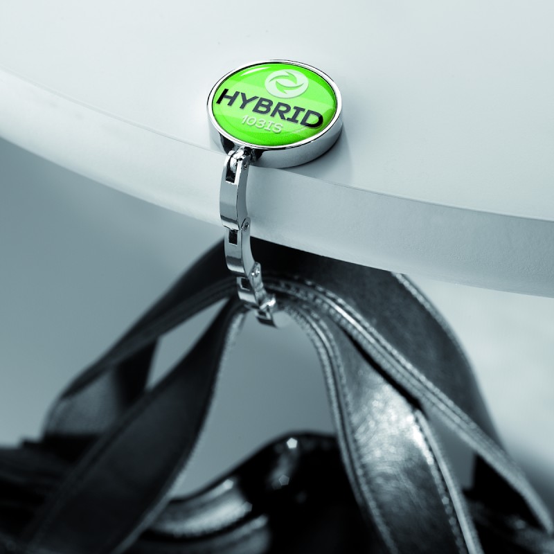 Elégant accroche-sac avec cordon acier ajustable.