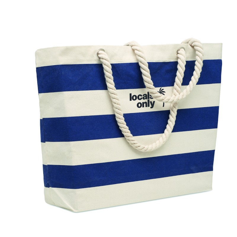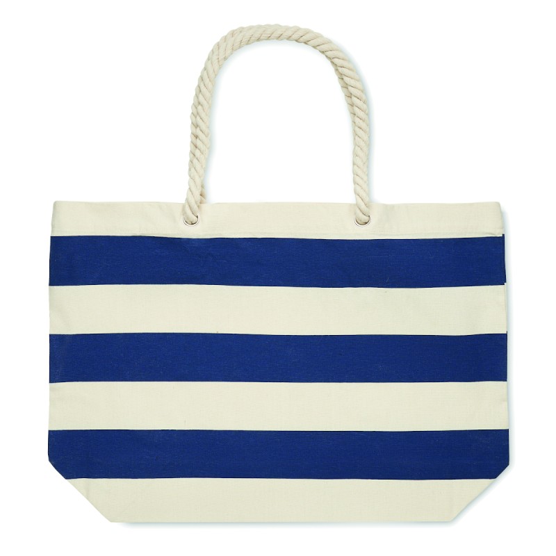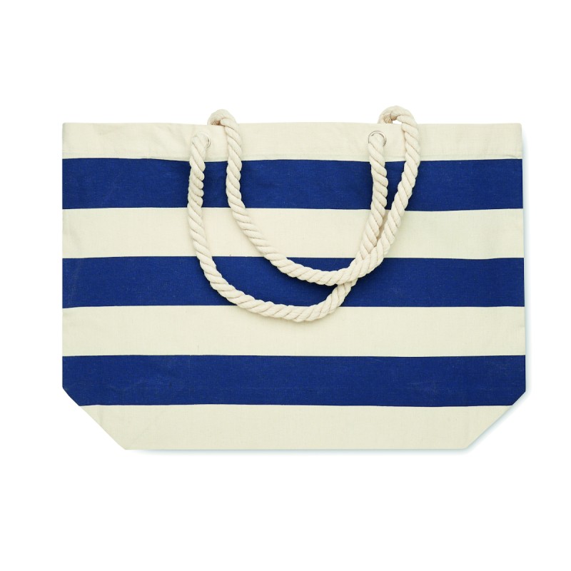 Sac de plage ou de shopping rayé en coton avec anses en corde. 220 gr/m².