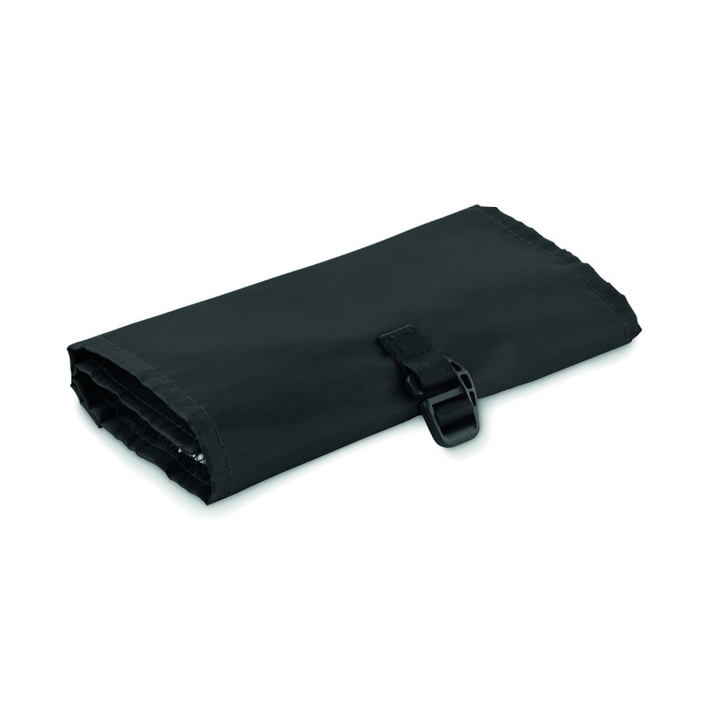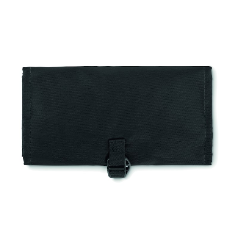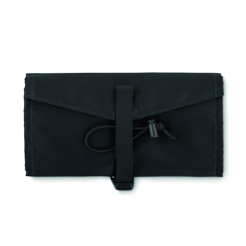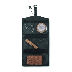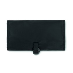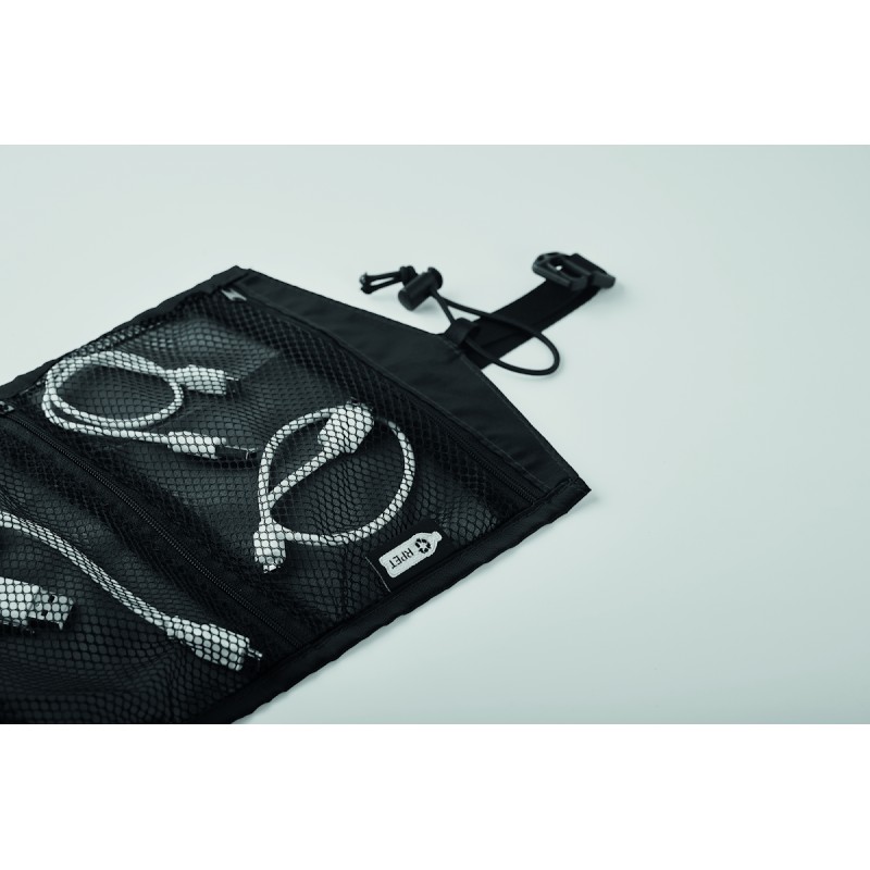 Organisateur de sac enroulable pour câbles en RPET 210D. Il est doté d'un filet en RPET et de 3 compartiments zippés. Ce sac peut également être utilisé comme sac à cosmétiques.