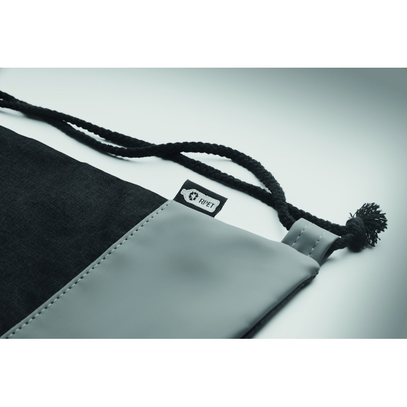 Sac à cordon en polyester 300D RPET bicolore avec détails en PU souple et cordon en polycoton.
