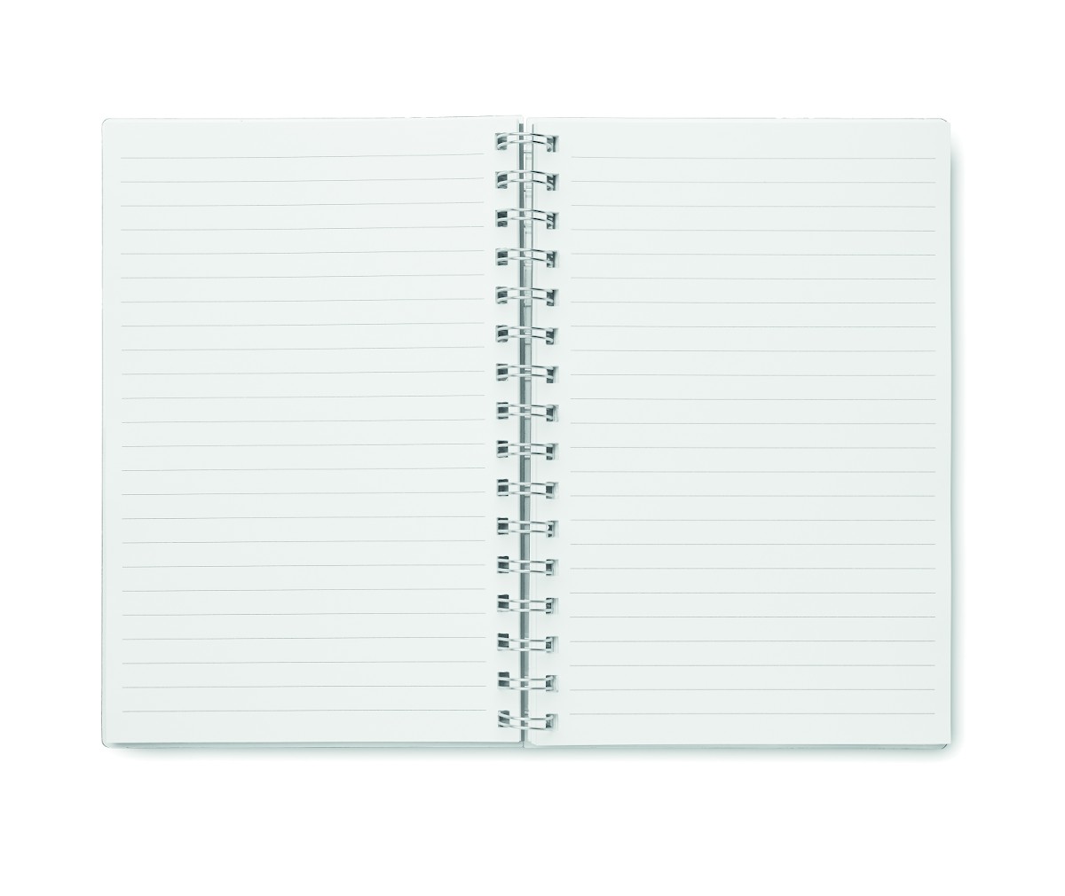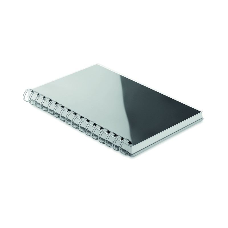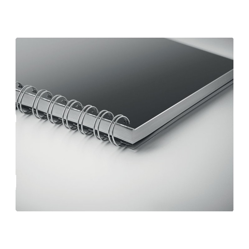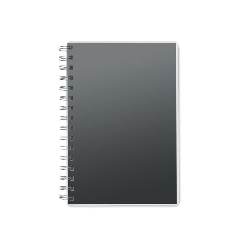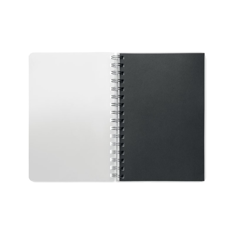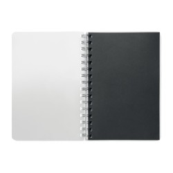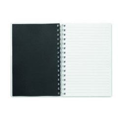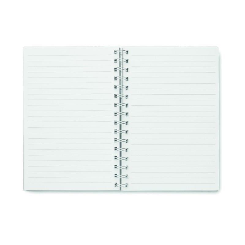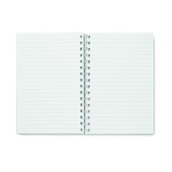 Carnet A5 à spirale avec couverture RPET. 160 pages blanches lignées recyclées (80 feuilles).
