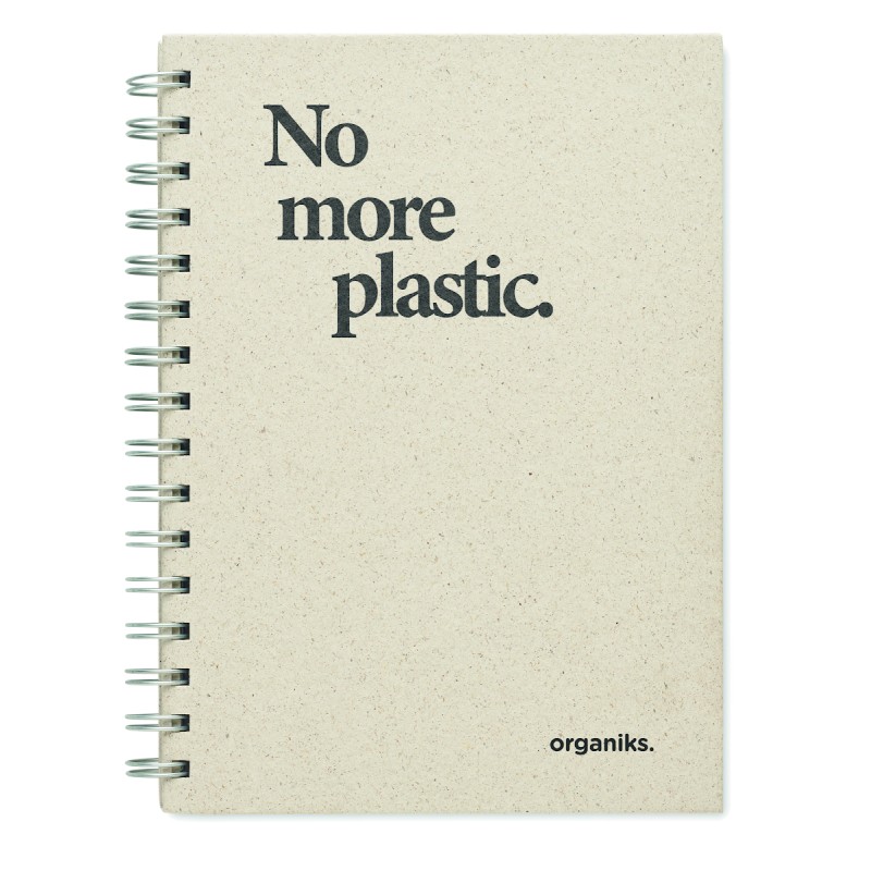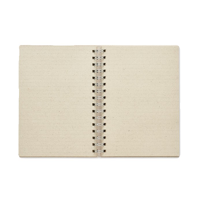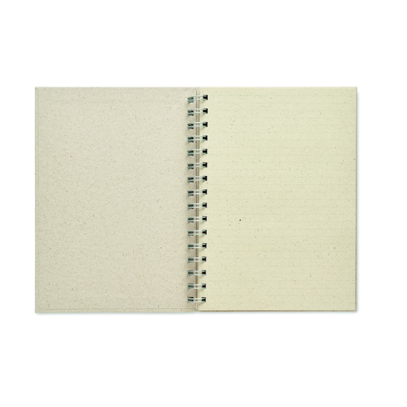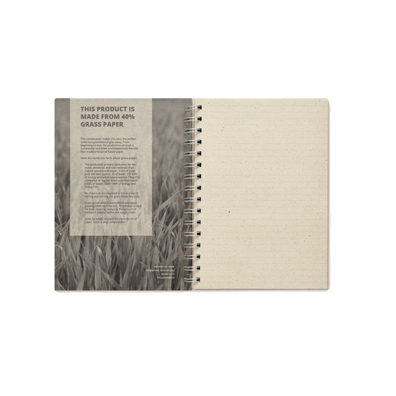 Carnet à spirales A5, 80 feuilles de papier à base d'herbe lignées et couverture en carton (40%). Fabriqué dans l'UE.