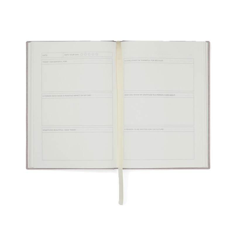 Commencez votre voyage aujourd'hui avec ce journal intime et soyez témoin de la transformation progressive de votre état d'esprit au fil du temps. Capturer la beauté des expériences et des réflexions quotidiennes. Ses pages A5 modélisées, comportant des questions explicites et des cases à remplir, offrent un moyen simple de documenter vos pensées. Avec son design intemporel et élégant, le carnet complète parfaitement tout décor intérieur. Complet avec un marque-page en ruban et une couverture en tissu. Certifiée par GRS (Global Recycled Standard), la certification GRS garantit que toute la chaîne d'approvisionnement des matériaux recyclés est certifiée. Le contenu recyclé total est basé sur le poids total du produit. Ce produit contient 73 % de papier recyclé certifié GRS.
