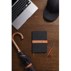 Carnet de notes A5 en papier recyclé avec bande en PU et fermeture magnétique. Le carnet contient 80 feuilles en papier recyclé de 80 g/m² lignées. Fabriqué à partir de 75% de matériaux recyclés certifiés RCS (Recycled Claim Standard). La certification RCS garantit une chaîne d'approvisionnement entièrement certifiée des matériaux recyclés utilisés, soulignant notre engagement envers un approvisionnement responsable. Le contenu recyclé du carnet est basé sur son poids total.
