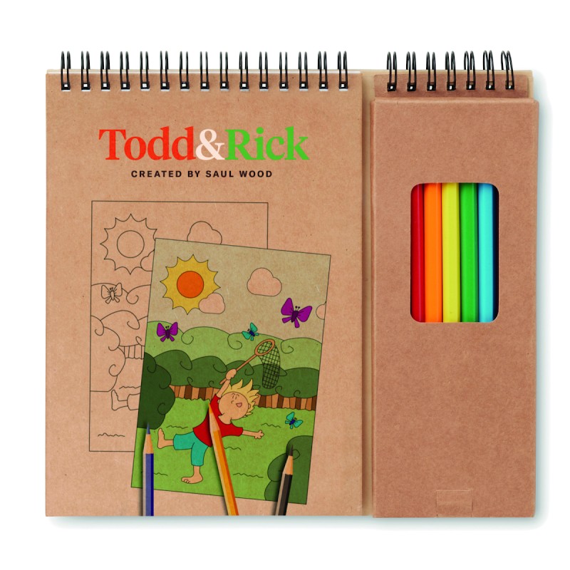 Ensemble de coloriage de 24 pages, dont 6 pages de dessin et 18 pages vierges. Comprend 8 crayons de couleurs.