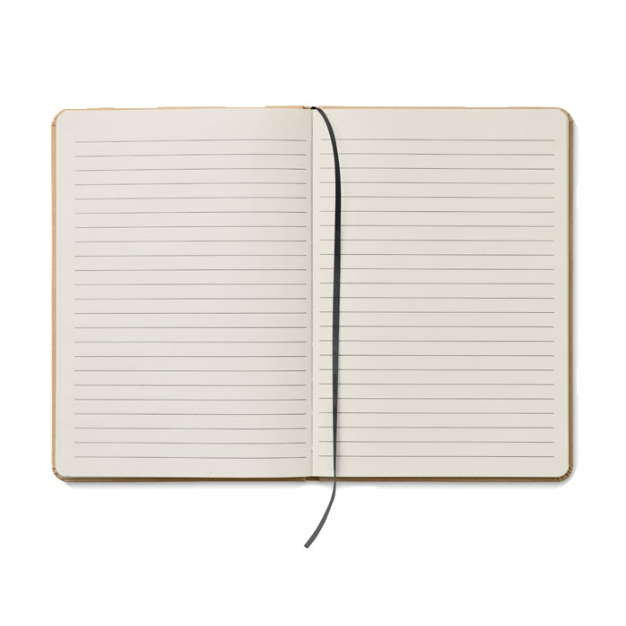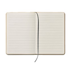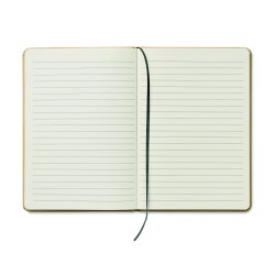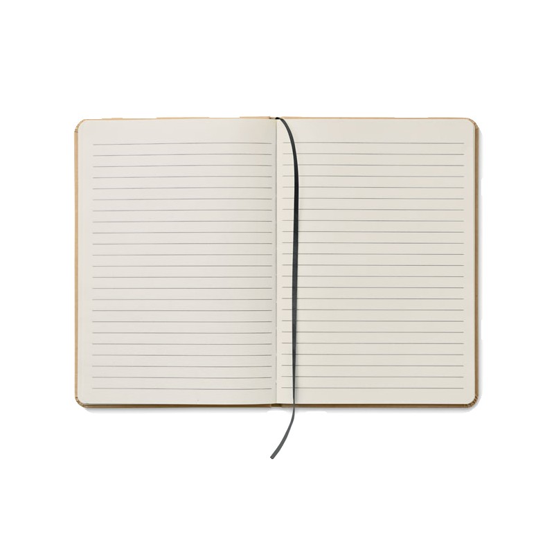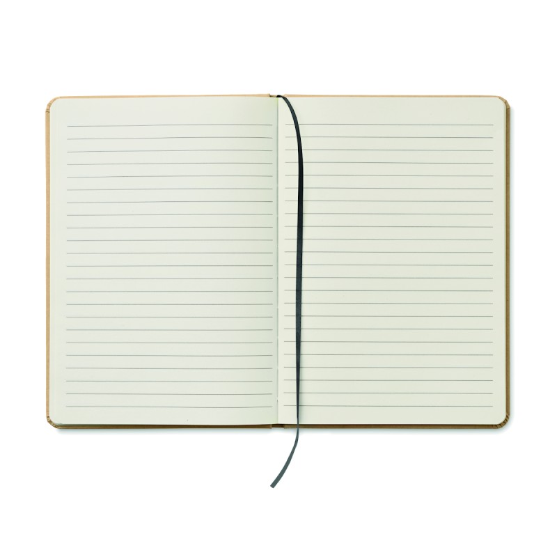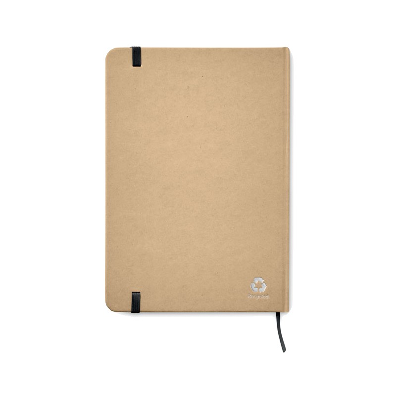 Carnet A5 avec couverture rigide en carton recyclé. 160 pages lignées (80 feuilles en papier recyclé). Bande élastique de fermeture et ruban marque-page.