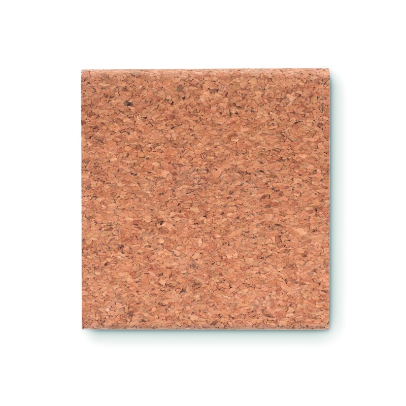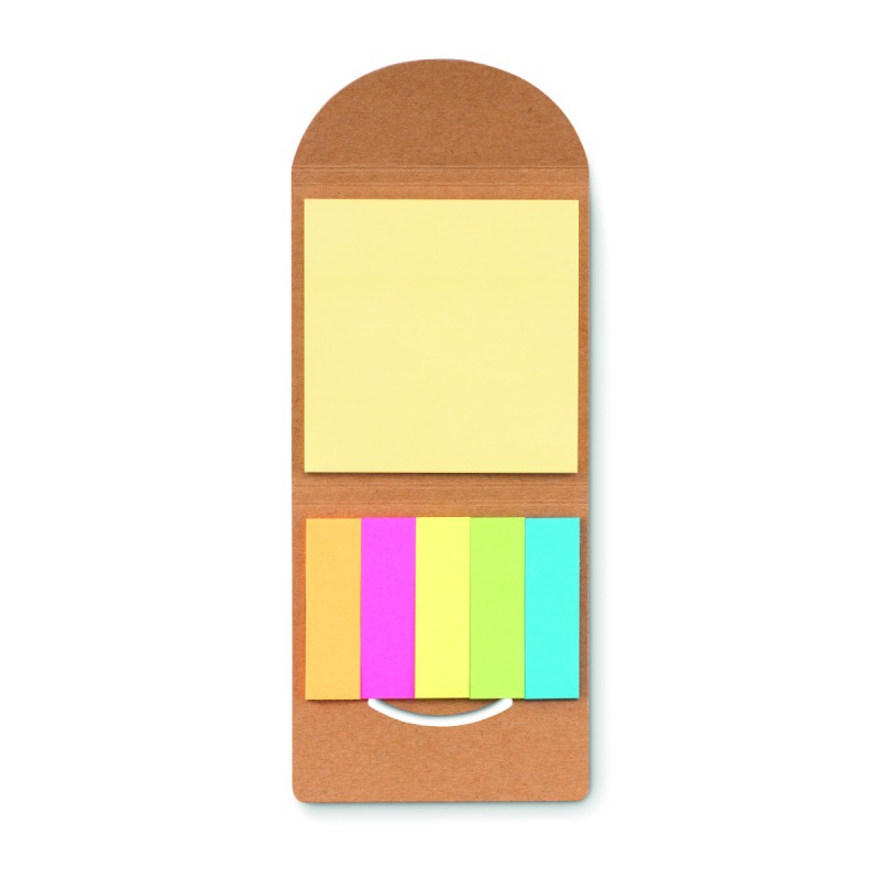 Bloc-notes adhésif avec couverture en liège. 125 feuilles grand format de notes adhésives jaunes et 25 feuilles de marque-pages de 5 couleurs assorties. Le liège est un matériau 100% naturel. En raison de sa structure et de la porosité de sa surface, le résultat final de l'impression par article peut présenter des différences.