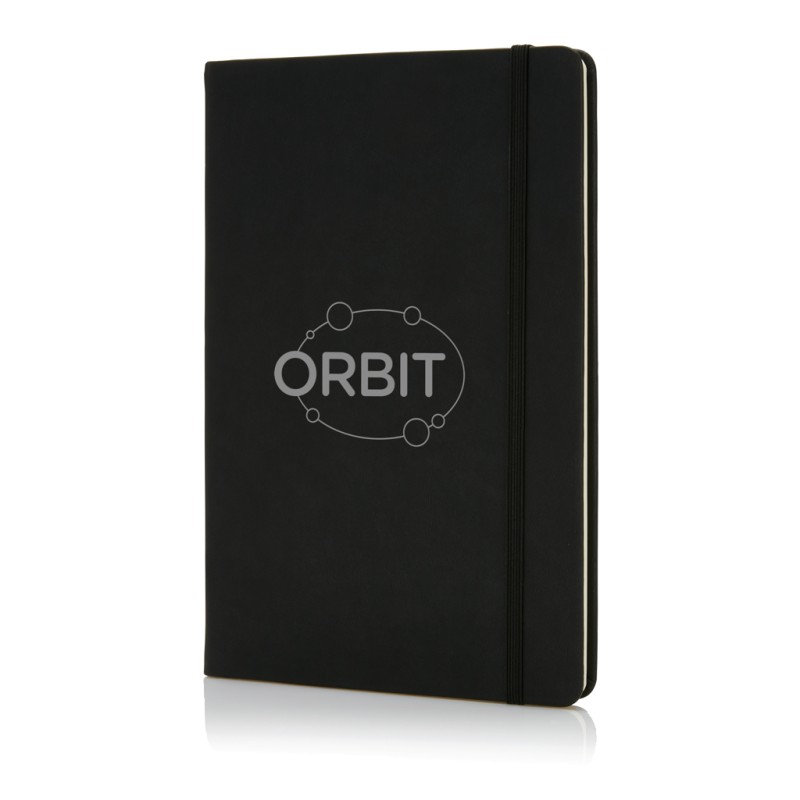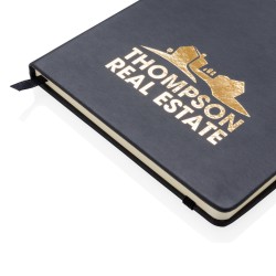 Carnet de notes avec 80 feuilles/160 pages de 80g/m² (papier crème), avec lignes noires et couverture en PU. Idéal pour un marquage en embossage.
