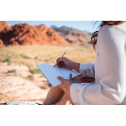 Carnet en feutre recyclé est parfait pour toutes vos notes. La couverture et les pages intérieures sont fabriquées à partir de matériaux 100% certifiés GRS. La certification GRS garantit une chaîne d'approvisionnement entièrement certifiée des matériaux recyclés. Contenu recyclé total : 99 % sur la base du poids total de l'article. Le cahier comporte 80 feuilles/160 pages lignées de 70 g/m2.