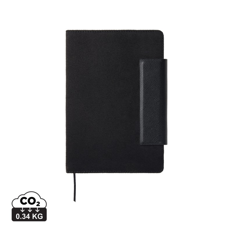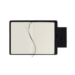 Un élégant carnet A5 composé de 160 pages lignées (80 feuilles). C'est l'accessoire idéal à emporter en réunion pour organiser vos notes avec style. Le carnet Marlow combine un design intemporel avec du faux cuir recyclé, des détails en PU et du papier recyclé. Le carnet est équipé d'une fermeture magnétique pratique et élégante. Certifié par GRS (Global Recycled Standard), la certification GRS garantit que l'ensemble de la chaîne d'approvisionnement des matériaux recyclés est certifiée. Ce produit contient 50 % de papier recyclé certifié GRS et 6 % de polyester recyclé certifié GRS.
