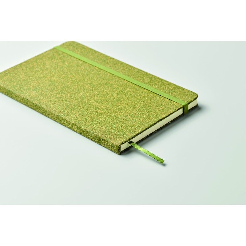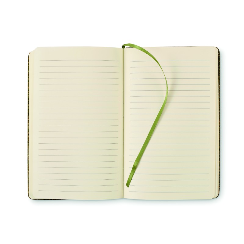 Carnet A5 avec couverture rigide composée de 20% de marc de thé, 30% de liège et 50% de tissu polycoton. 160 pages lignées en papier recyclé (80 feuilles/70gsm). Elastique et ruban marque pages assortis. FSC®-certified | FSC MIX CREDIT, N7.1, FSC-C213206