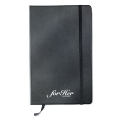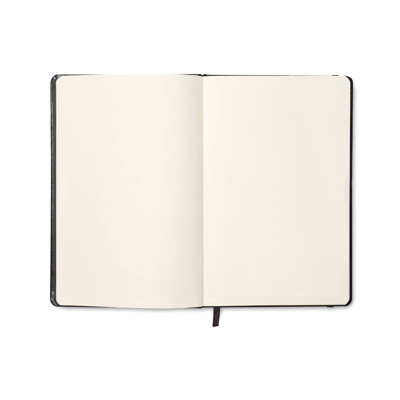 Carnet A5 avec couverture rigide en PU. Reliure dos collé. 192 pages en papier recyclé ordinaire (96 feuilles). Bande élastique de fermeture et ruban marque-page assortis.