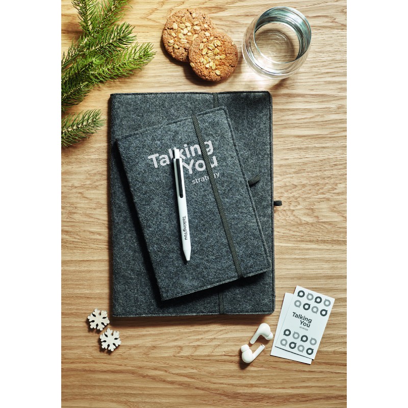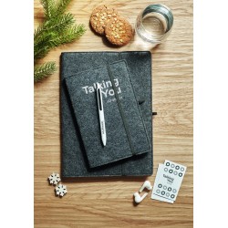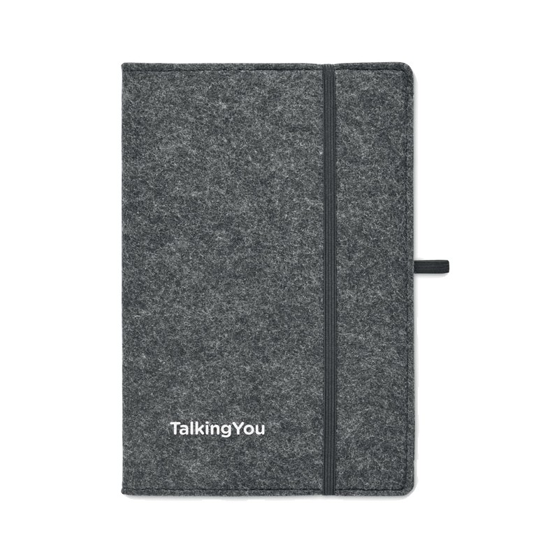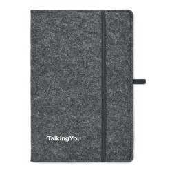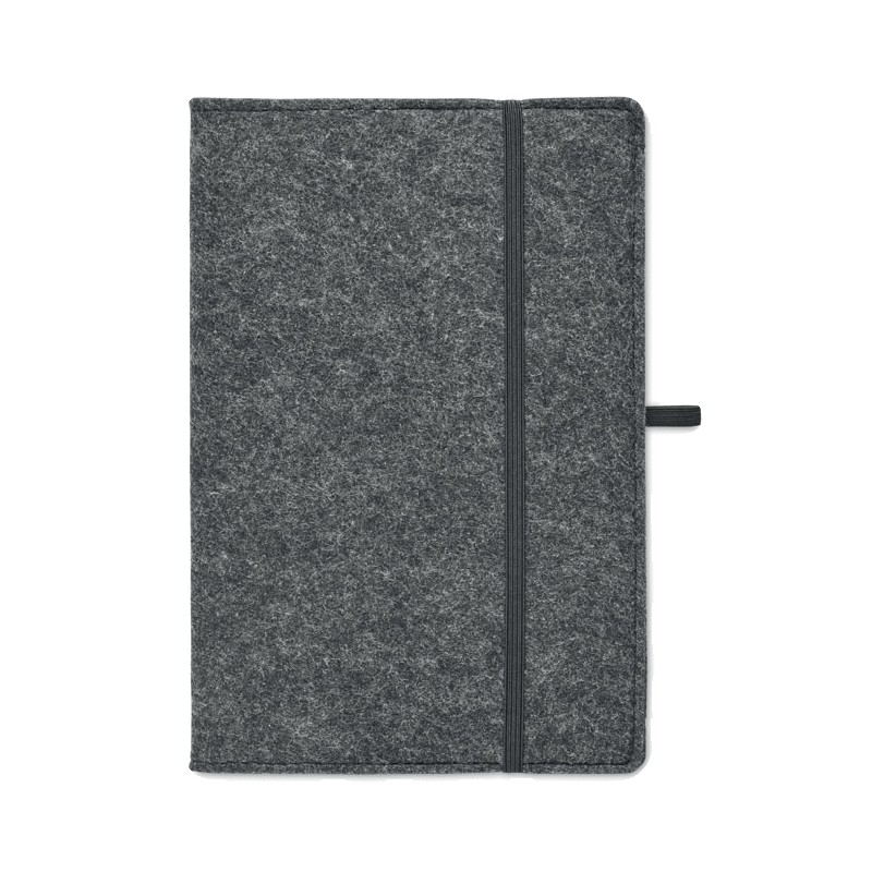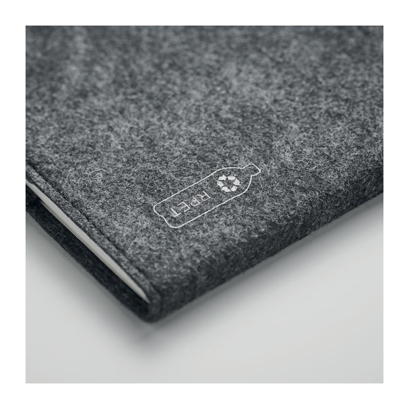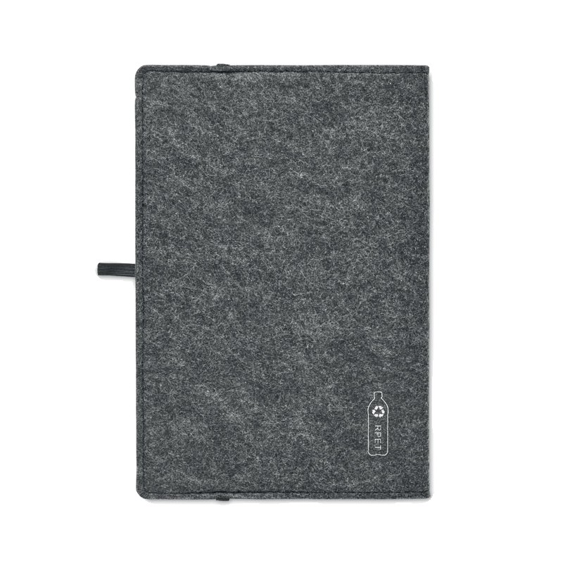 Carnet A5 avec couverture en feutre RPET. 160 pages lignées en papier recyclé (80 feuilles / 70 gr/m²). Passant pour stylo.