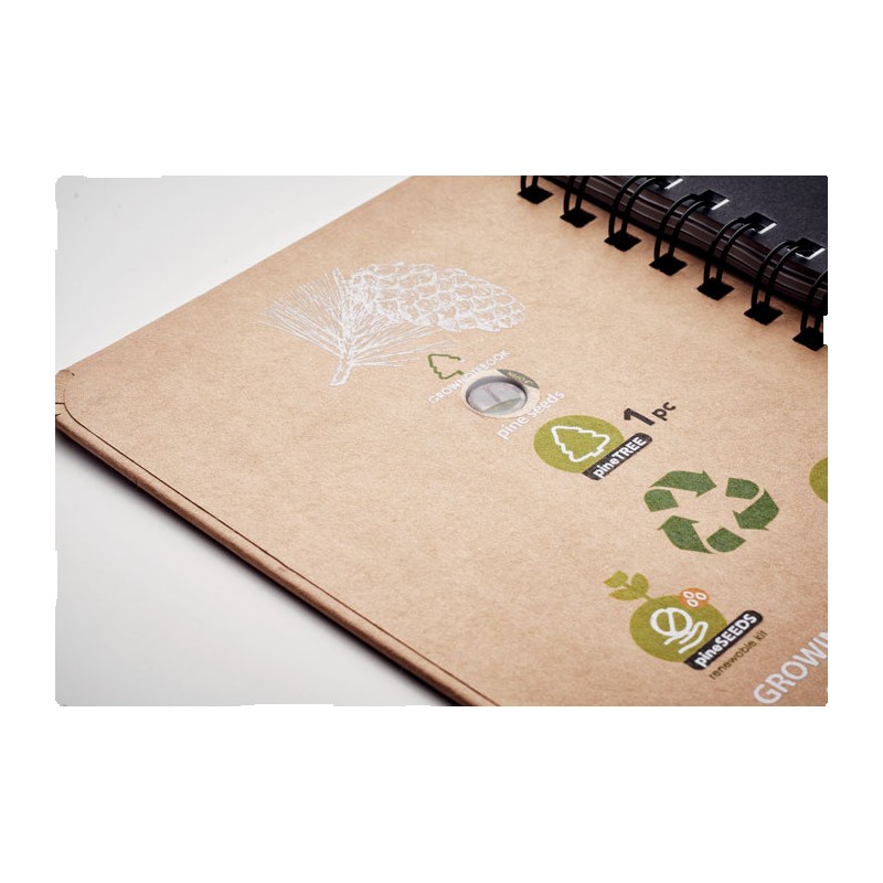 Pine tree GROWNOTEBOOK™. Notez vos pensées et rendez un arbre à la Terre avec ce carnet en papier récolté de manière durable. Vous pouvez contribuer à sauver notre planète en plantant un pin qui poussera d'environ 30 cm par an. Cahier à spirale A5 , couverture rigide. 144 pages lignées (72 feuilles). Contient des graines de pin (pinius nigra). Fabriqué dans l'UE.
