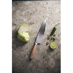 Couteau édition chef est idéal pour couper la viande et les légumes plus gros ou pour hacher les herbes. Le manche robuste en pakkawood est conçu de manière ergonomique, ce qui rend le couteau facile et confortable à utiliser. Cela signifie que vous pouvez travailler avec le couteau pendant une longue période sans fatiguer votre main. La lame possède un noyau incroyablement dur en acier VG10 qui est coulé dans 67 couches d'acier. Le résultat est une lame durable au tranchant incroyable et aux performances de coupe exceptionnelles.